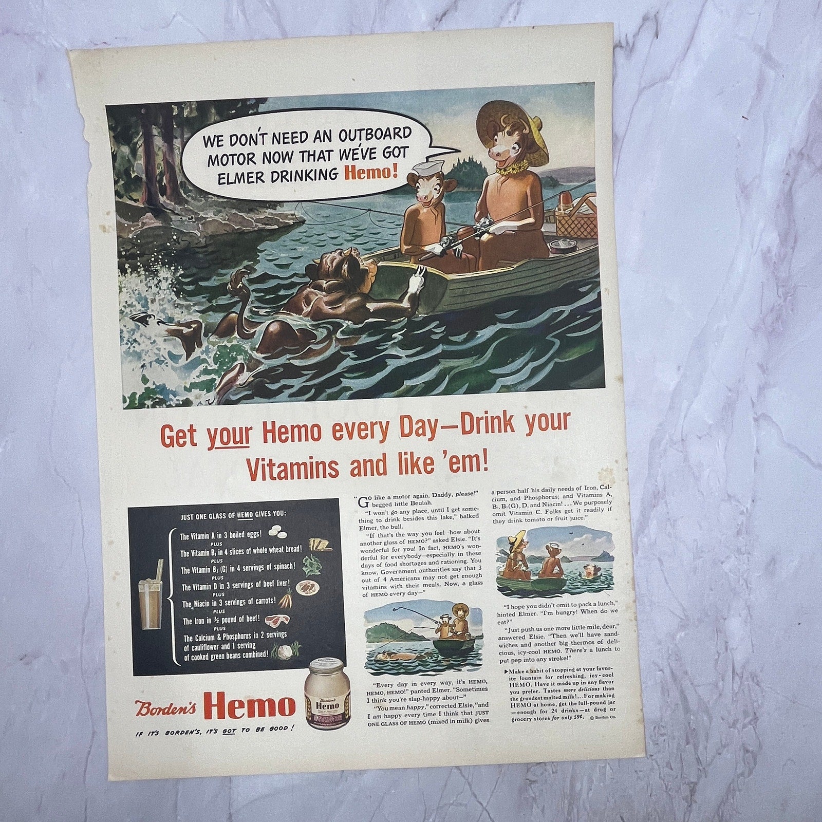 Borden's Hemo Daily Vitamins Comic Vintage Ad 10x13 V17