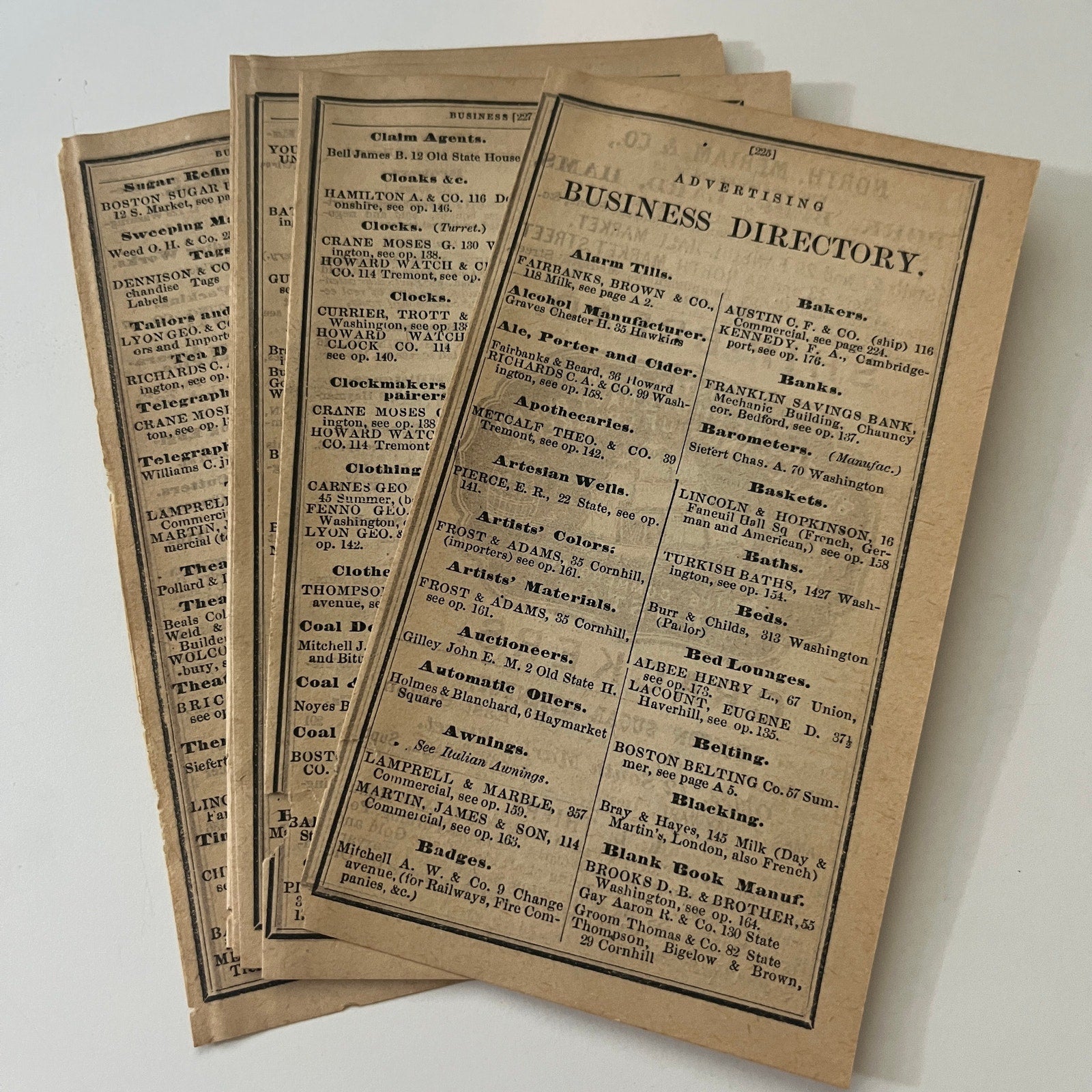 Boston Business Listings 8 Pages 1871 Boston Almanac Clipping SAI2-H4