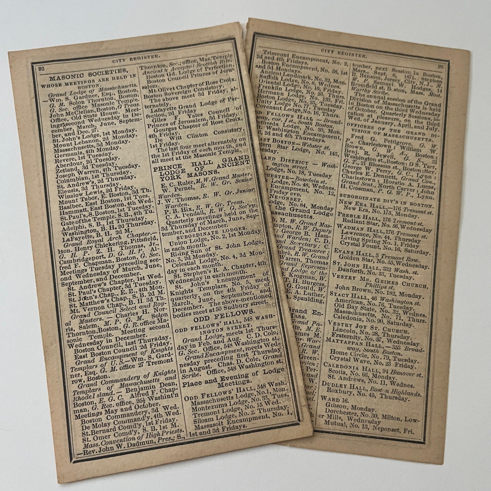 Boston Masonic Societies Listings 2 Pages 1871 Boston Almanac Clipping SAI2-H4