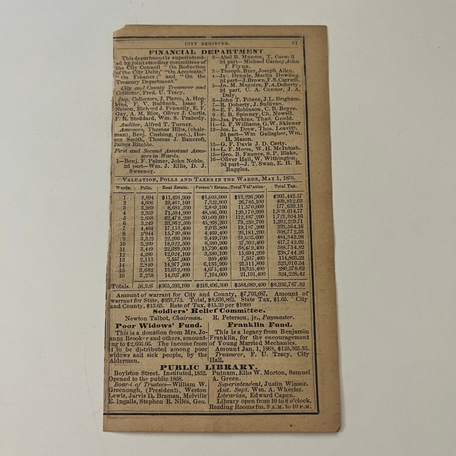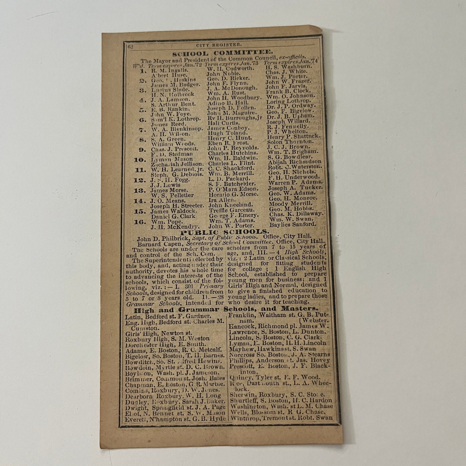 Boston School Committee Listings 1871 Boston Almanac Clipping SAI2-H4