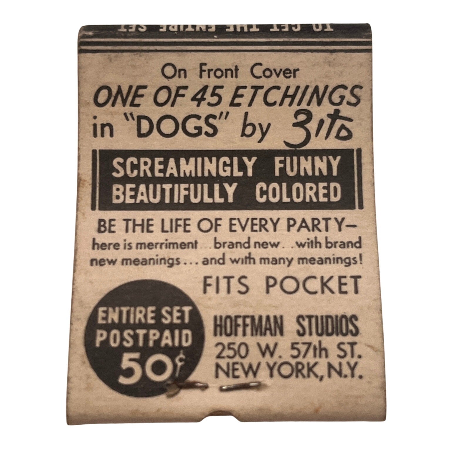 Boston Terrier Dog Etchings Hoffman Studios NY Vintage Matchbook Cover TB8-MB2-4