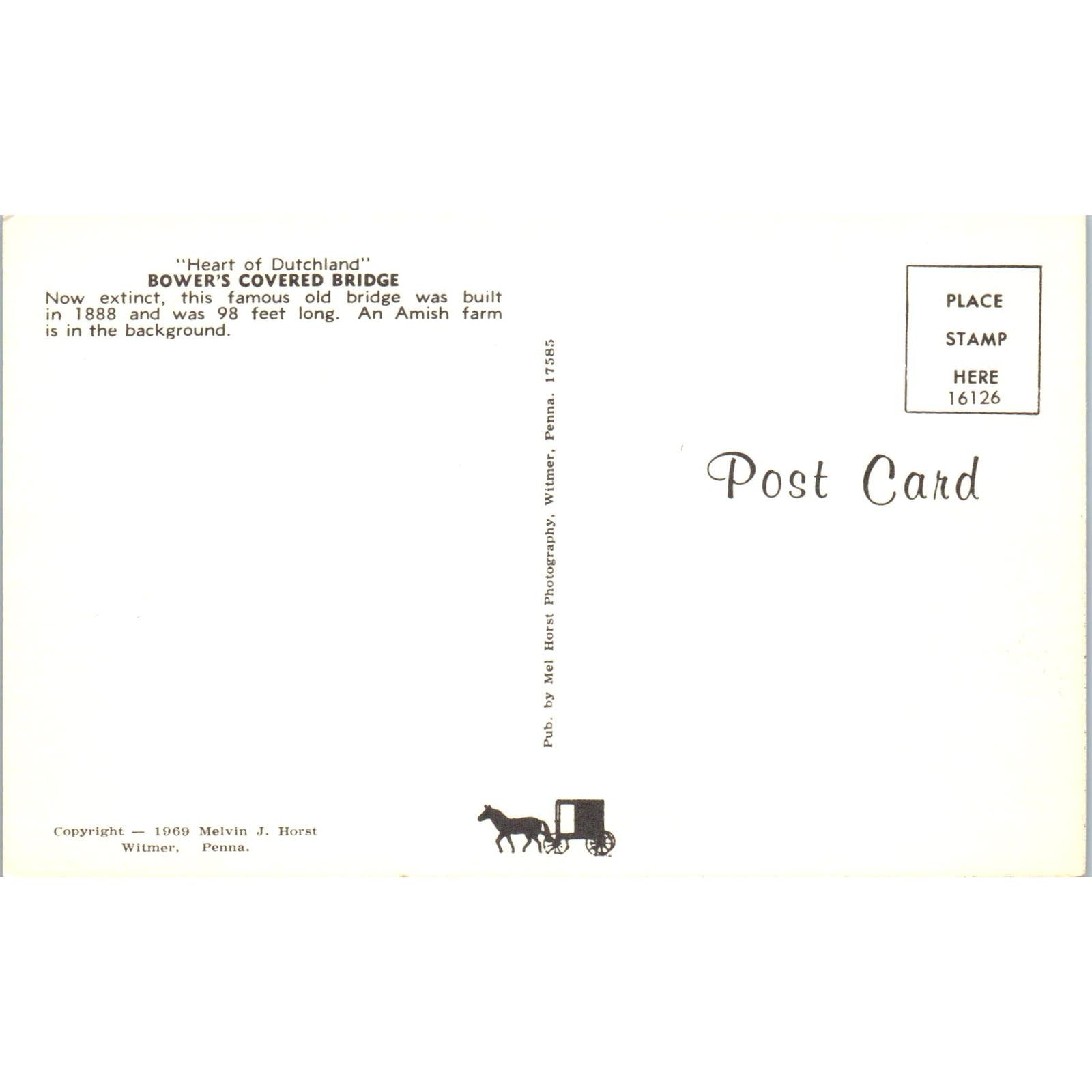 Bower's Covered Bridge Amish Heart of Dutchland Vintage Covered Bridge Postcard PD3