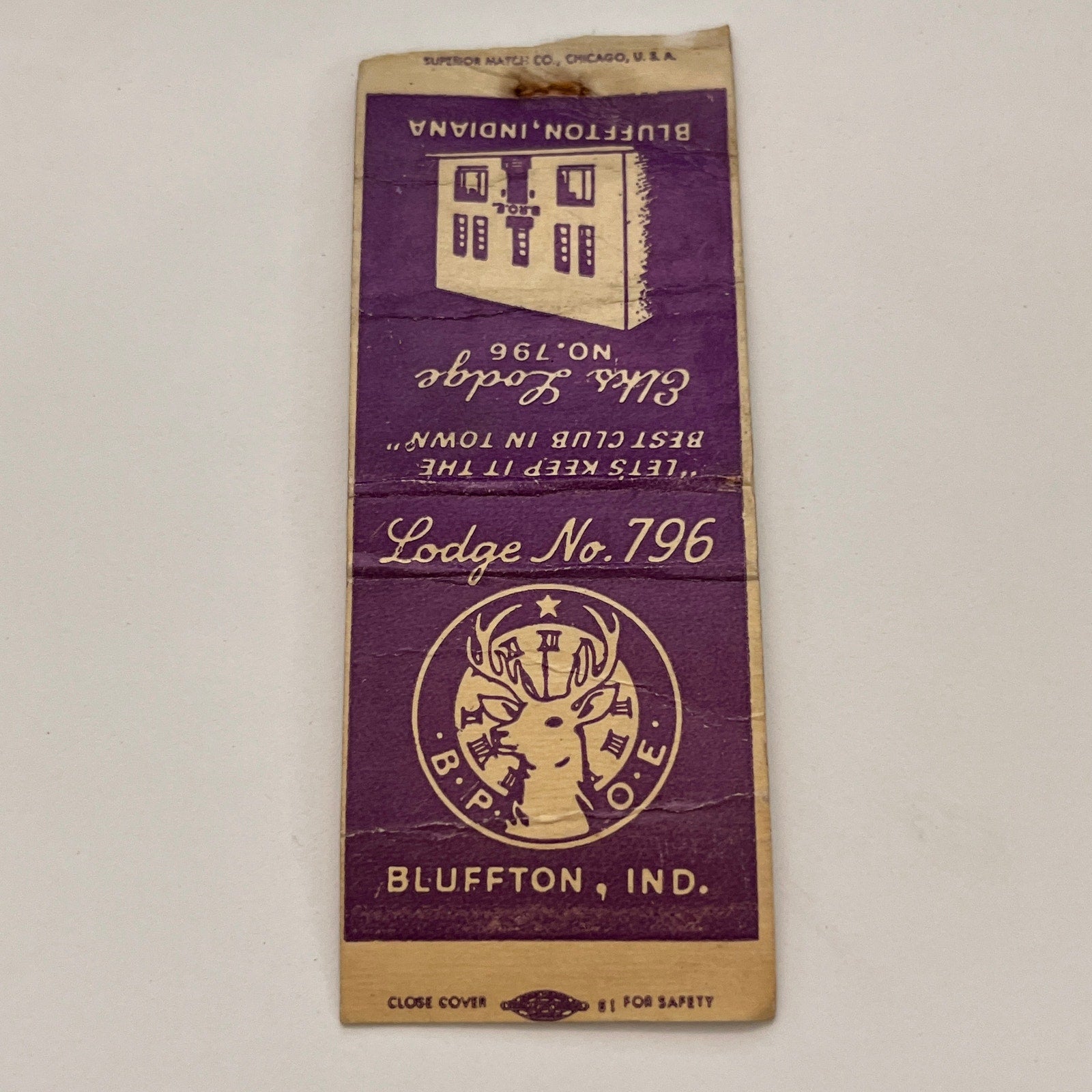 BPOE Elks Lodge No.796 Bluffton IN Vintage Matchbook TB6-MB2-15