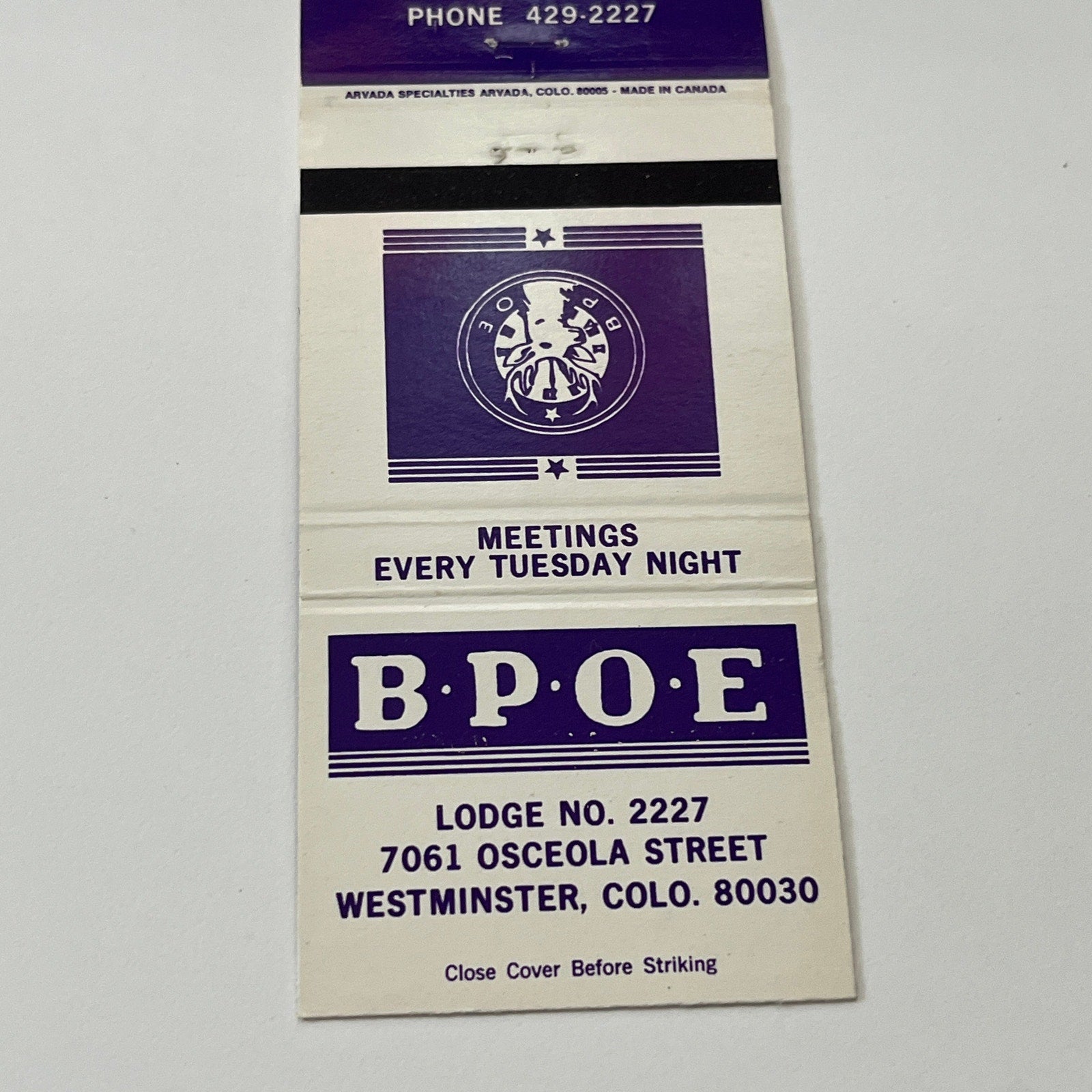 BPOE Lodge 2227 Westminster CO Vintage Matchbook Cover TB6-MB1-14