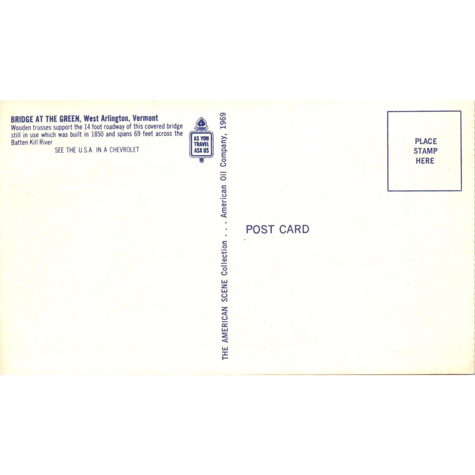 Bridge at the Green West Arlington VT Vintage Covered Bridge Postcard PD6