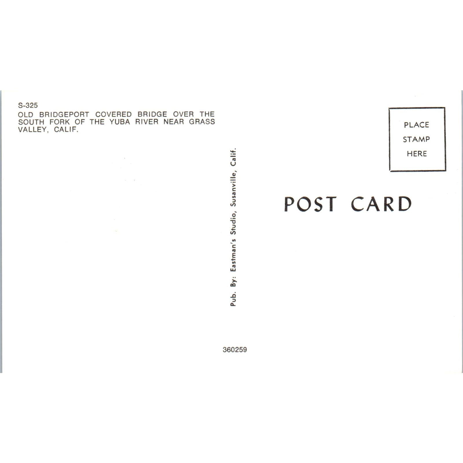 Bridgeport Bridge Yuba River Grass Valley California Covered Bridge Postcard PC2