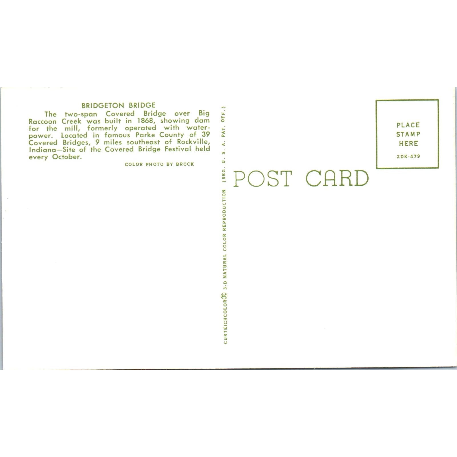 Bridgeton Bridge Parke County IN Vintage Covered Bridge Postcard PD6
