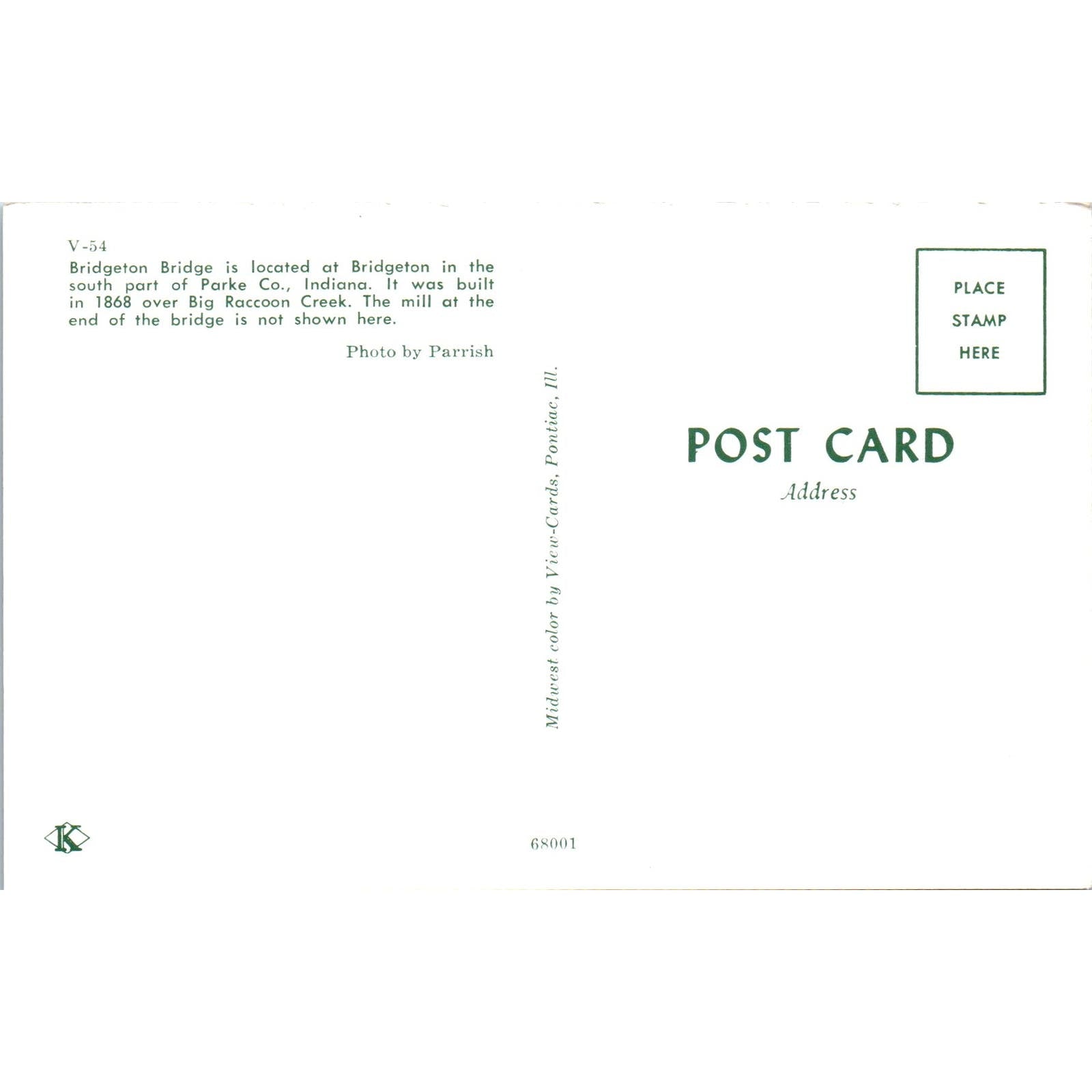 Bridgeton Bridge Parke County Indiana Vintage Covered Bridge Postcard PD6