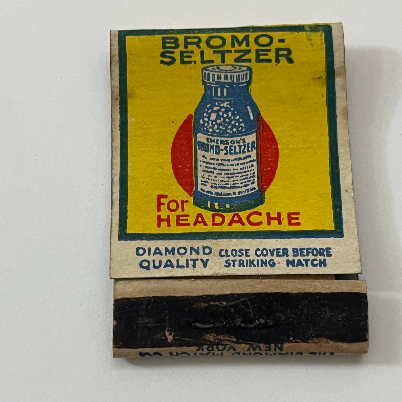 Bromo-Seltzer for Headaches Vintage Matchbook Cover TB8-MB-8