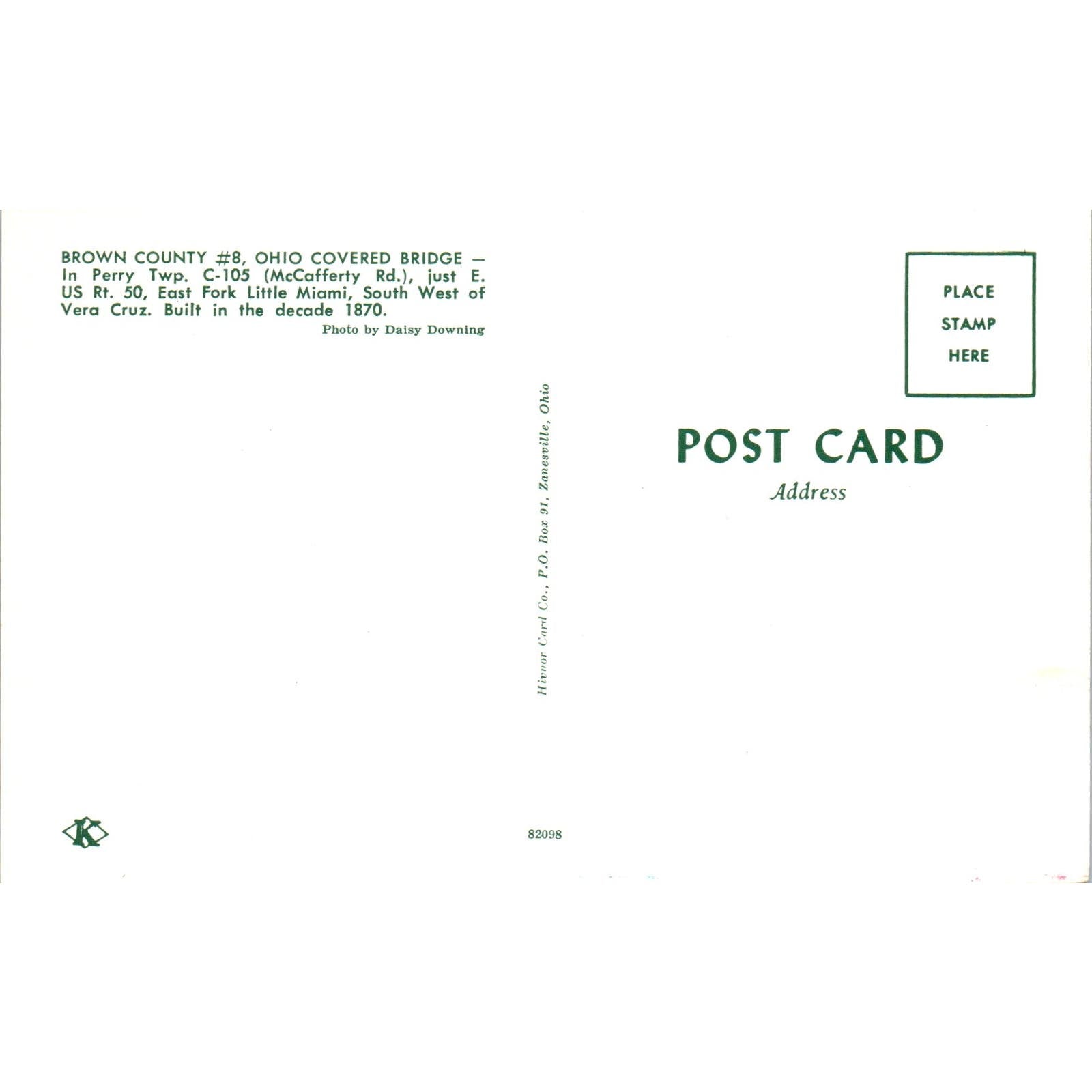 Brown County #8 Perry Twp East Fork Little Miami Covered Bridge Postcard PB10