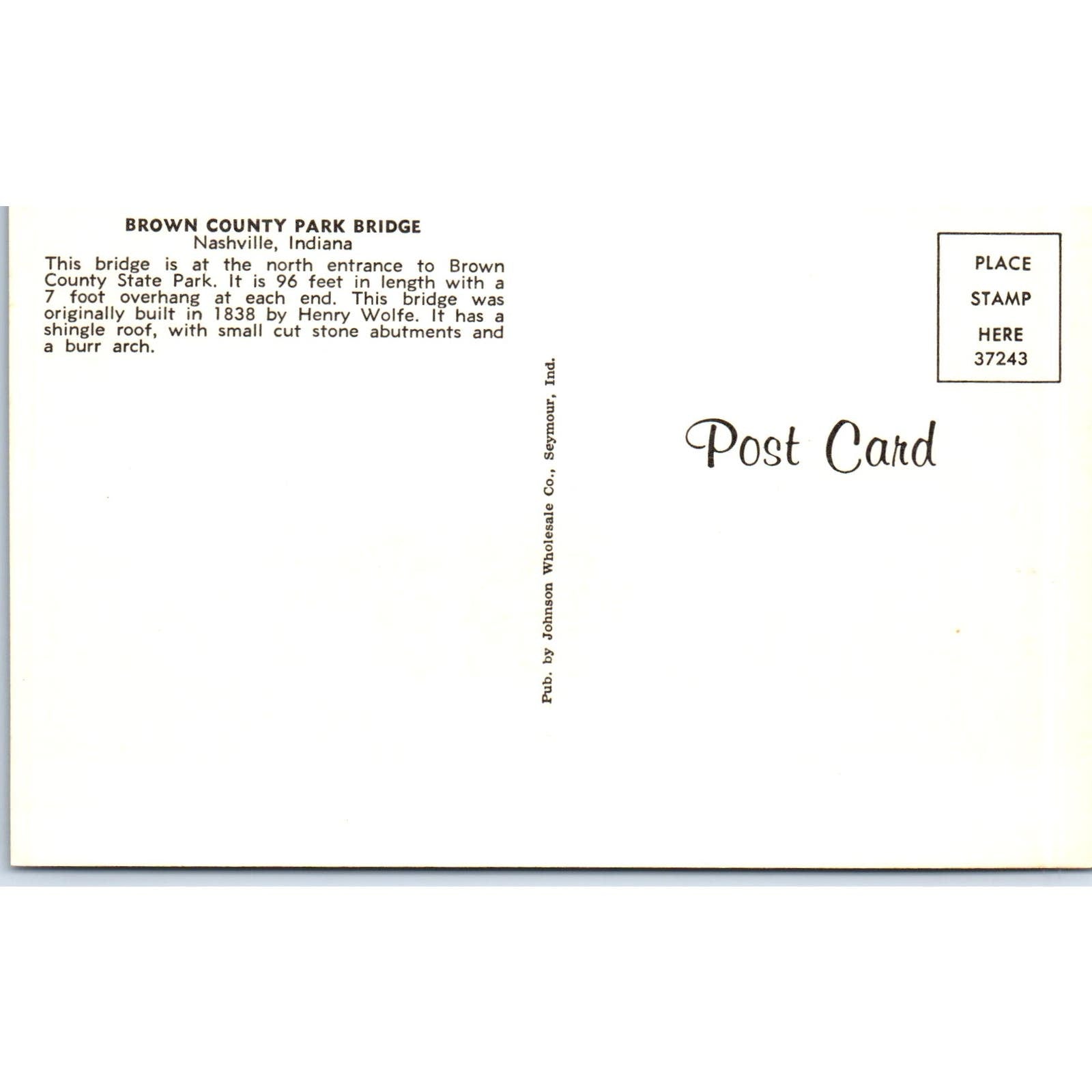 Brown County Park Bridge Nashville IN Vintage Covered Bridge Postcard PC13