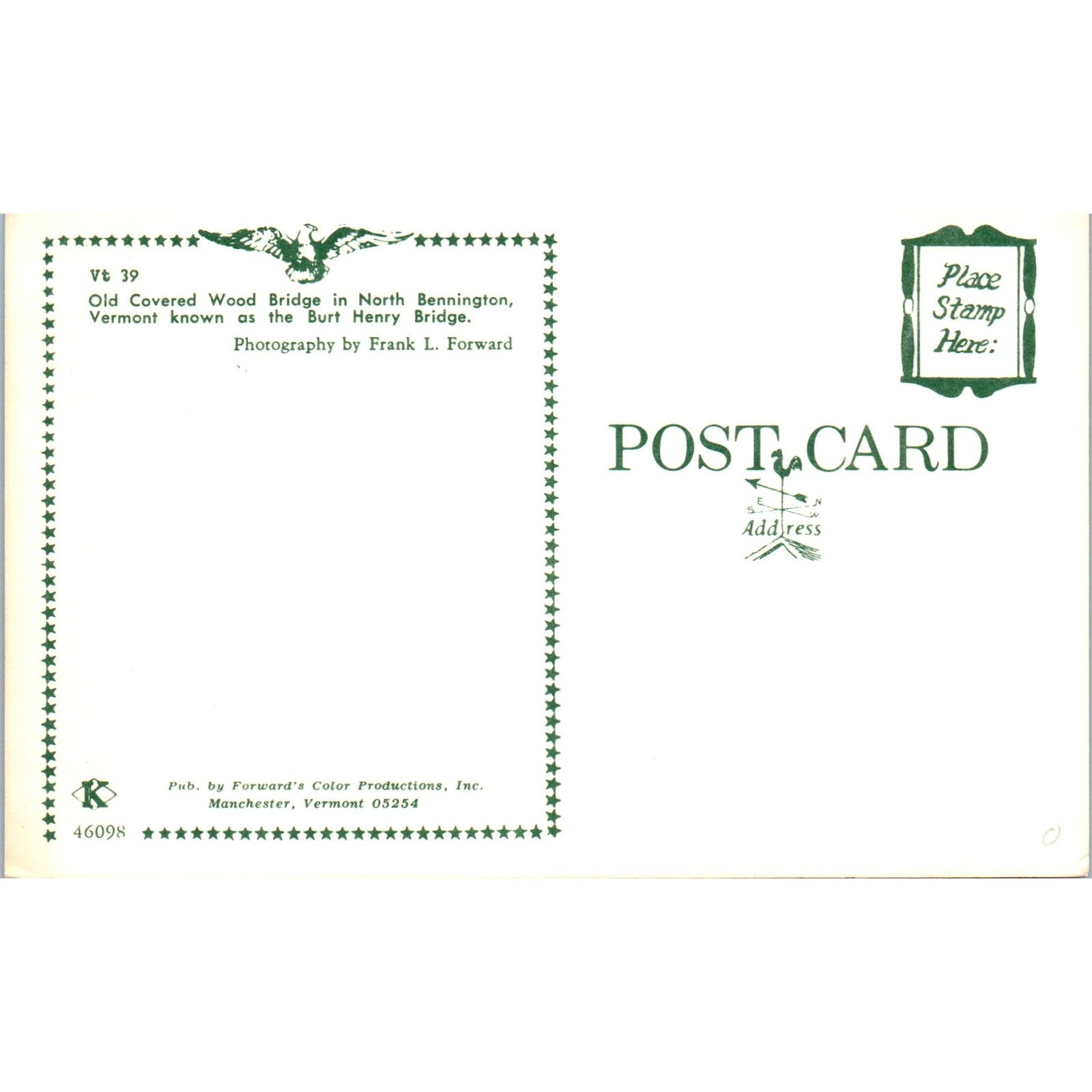 Burt Henry Bridge North Bennington VT Vintage Covered Bridge Postcard PC12