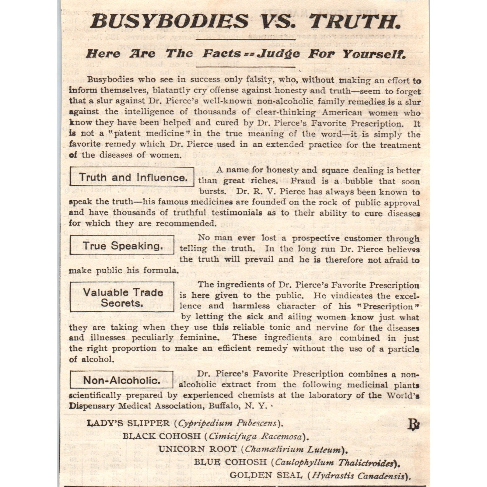 Busybodies Vs. Truth Dr. R. V. Pierce Non-Alcoholic Remedy 1905 Magazine Ad AF1-NEH