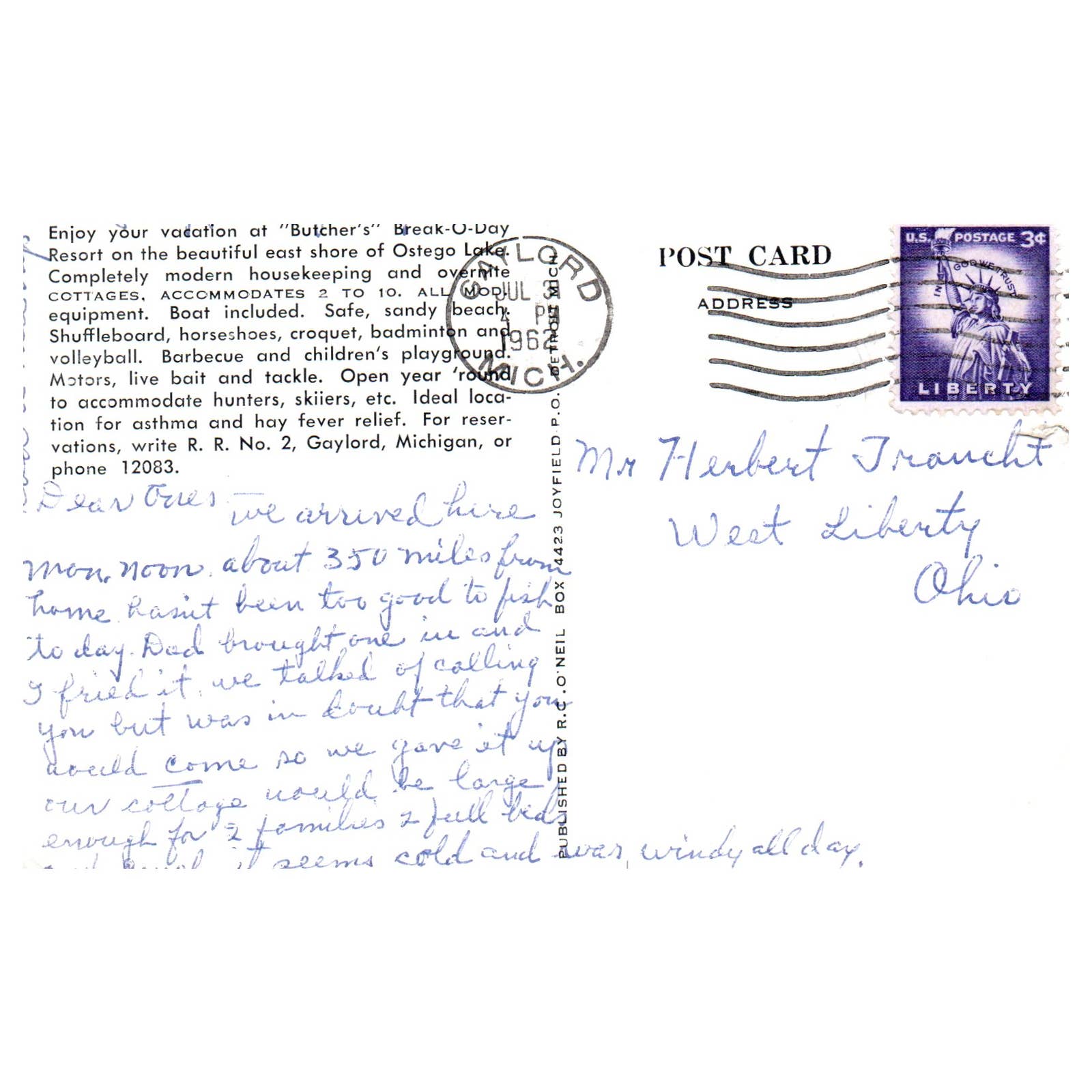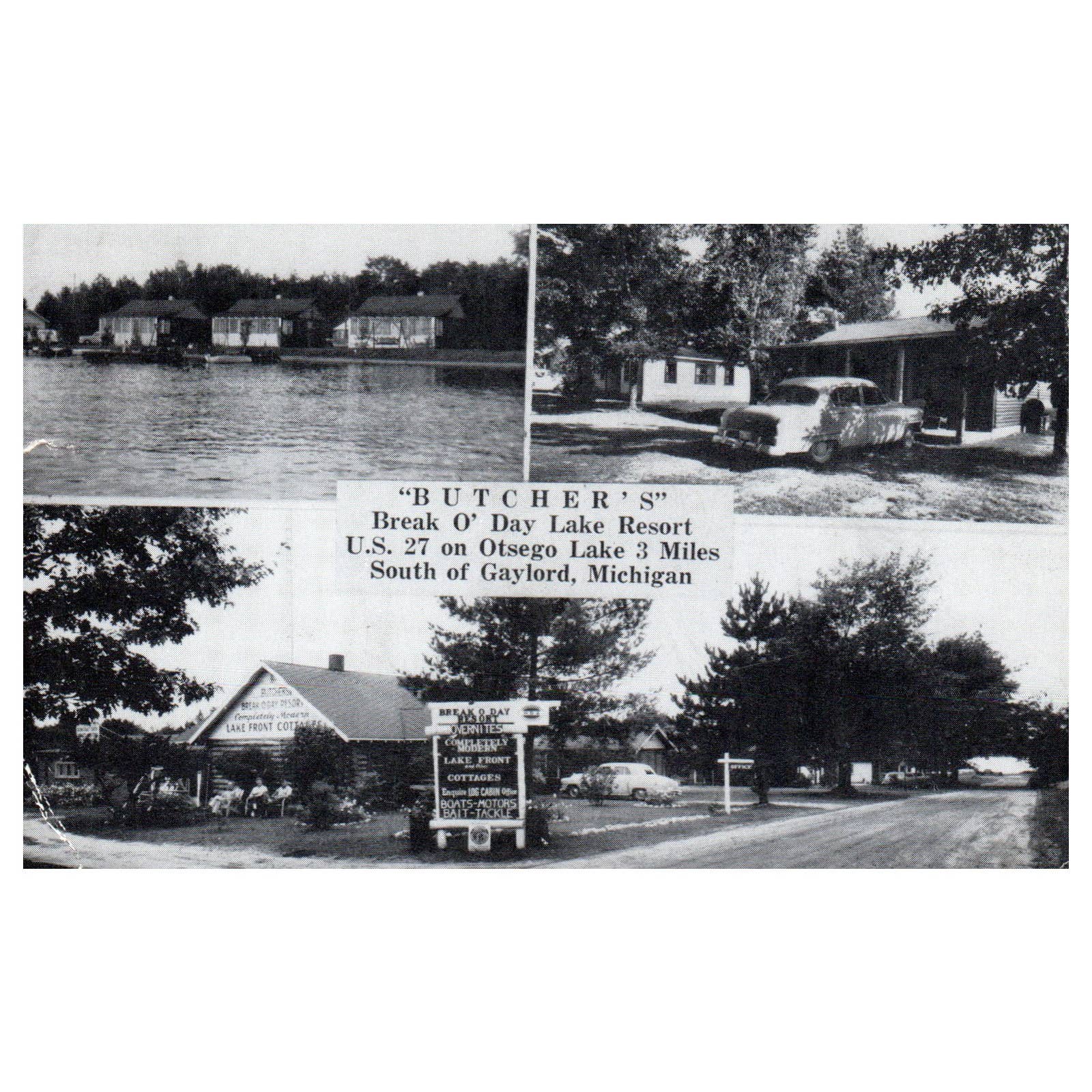 Butcher's Break O' Day Lake Resort Gaylord Michigan 1962 - Postcard TJ8-2