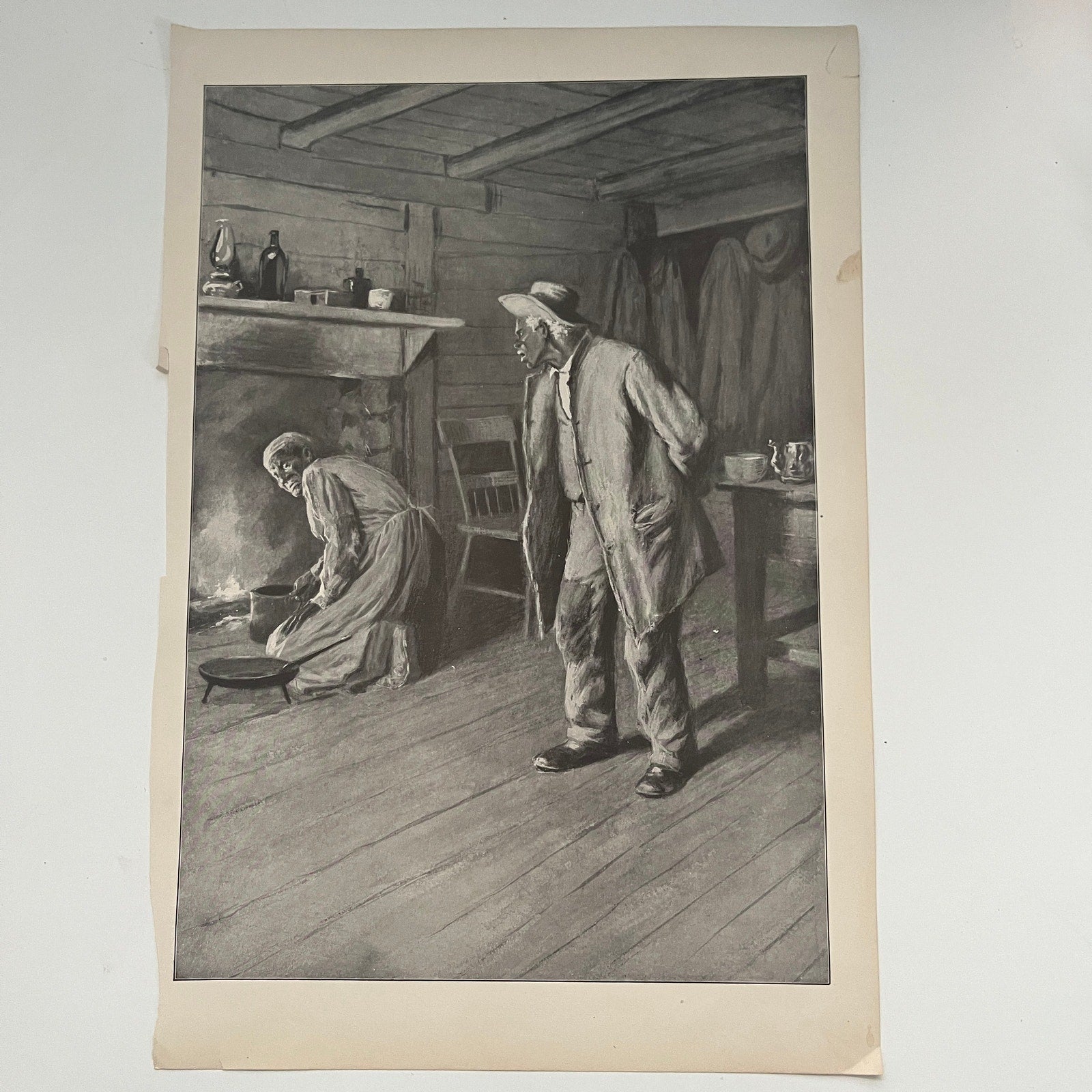 By-Gone Days - Elderly African Americans Scene - Original 1904 A.B. Frost Art Print V26-4