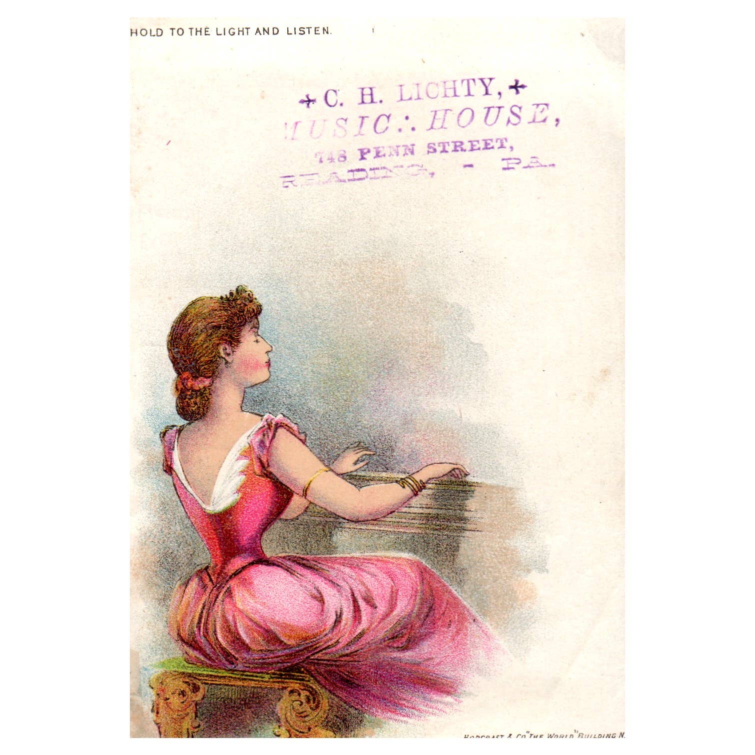 C.H. Lighty Music House Reading PA - 1880s Victorian Trade Card TJ8-3