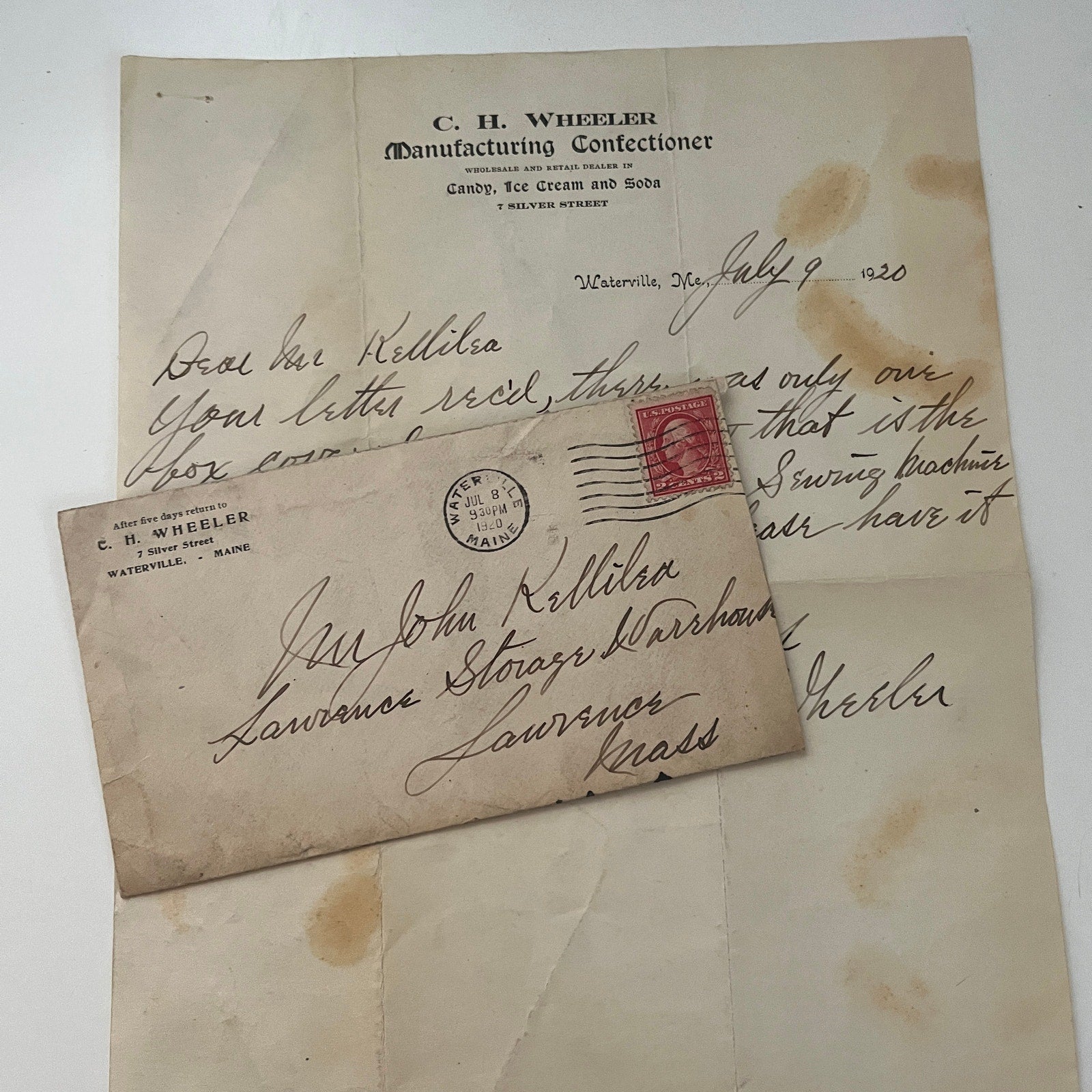 C.H. Wheeler Confectioner Waterville ME 1920 Letterhead & Envelope WA C7