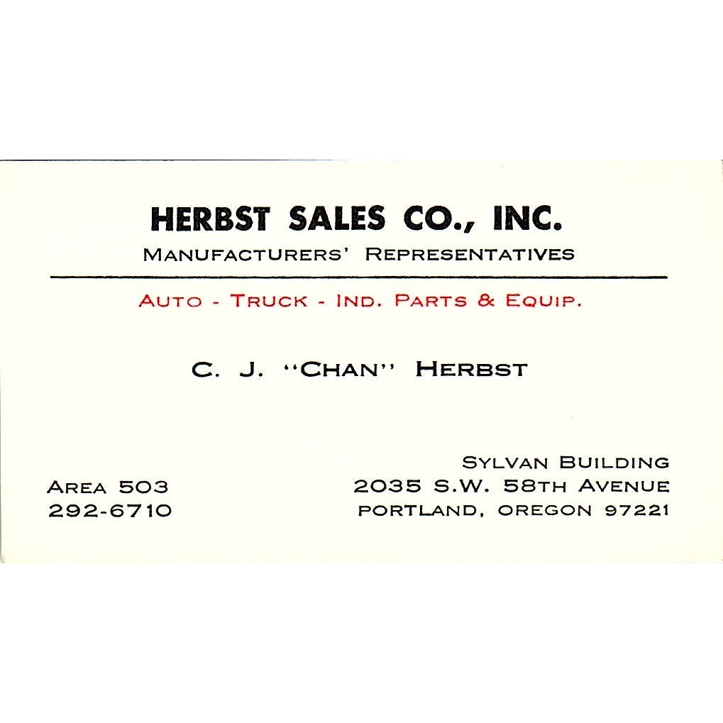 C. J 'Chan' Herbst Herbst Sales co. Portland Oregon Vintage Business Card SB4-B4