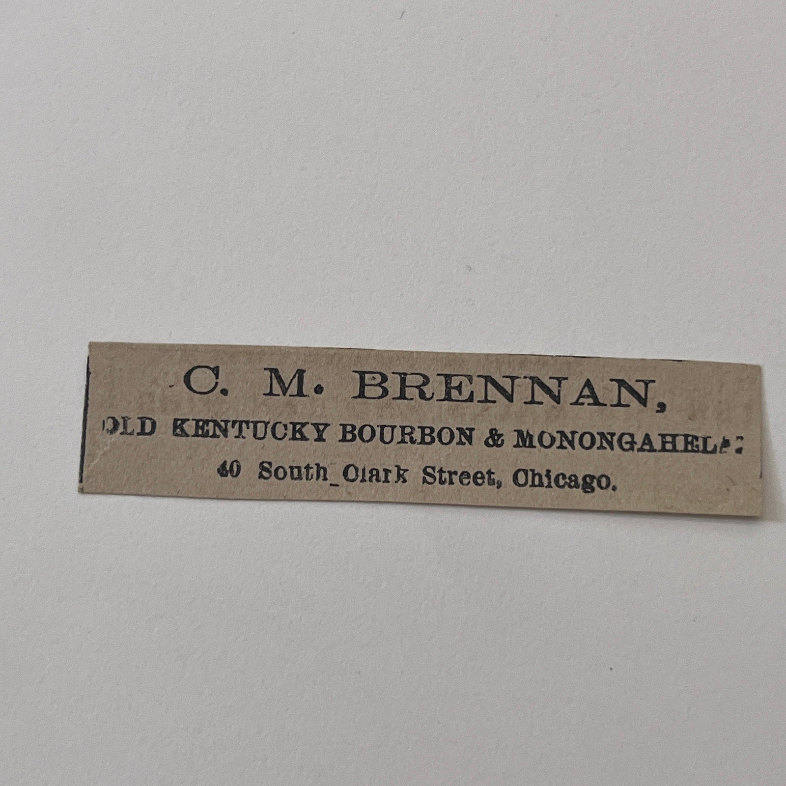 C.M. Brennan Old Kentucky Bourbon 40 South Clark St Chicago 1878 Ad AG2-M16