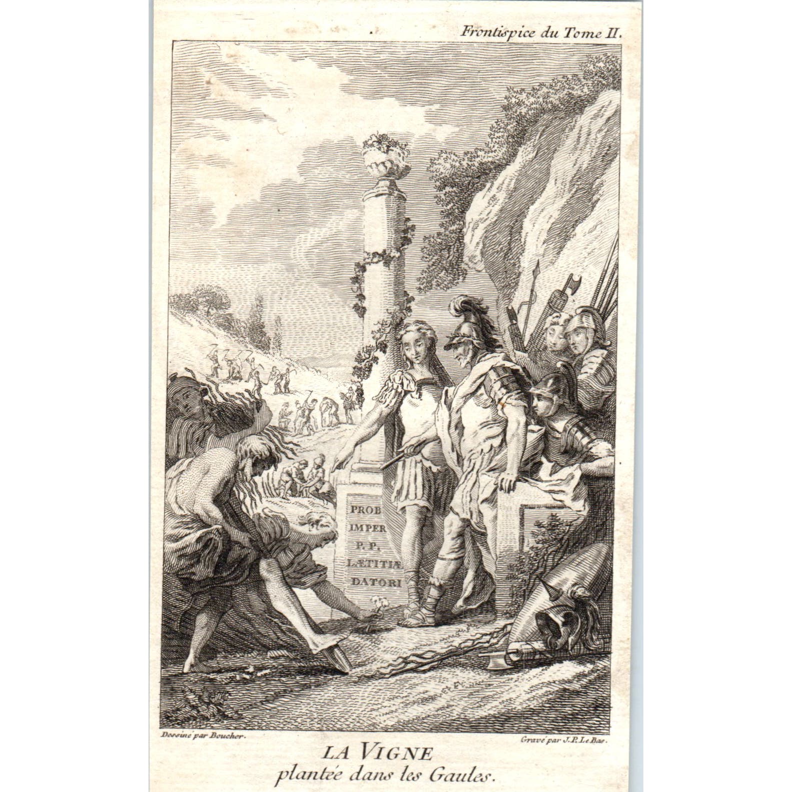 c1780 Original French Engraving Plate Roman Emperor Probus (232-282 AD) planting the grape vine in France. Engraved by Charles-Nicolas Cochin AE5-FE