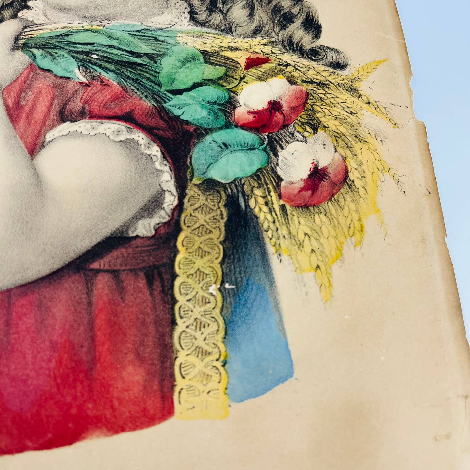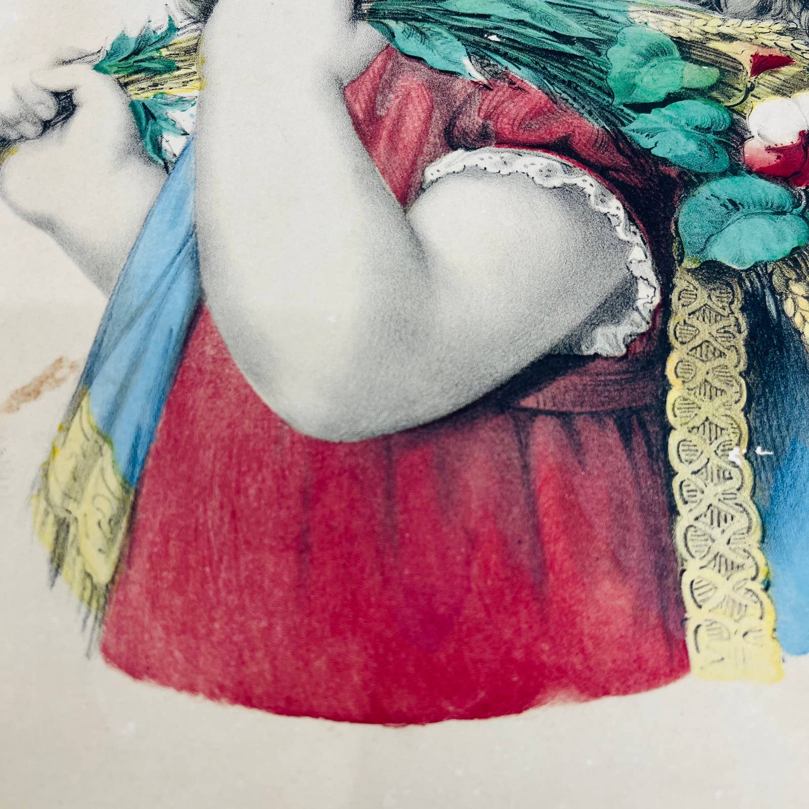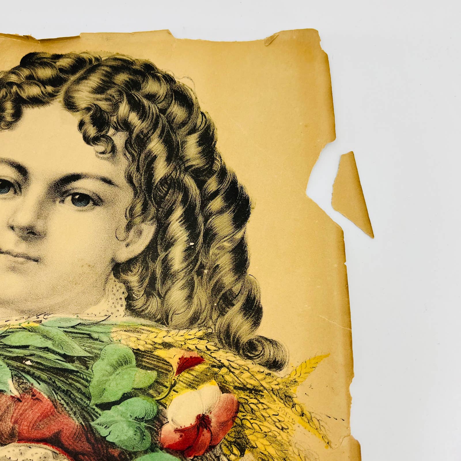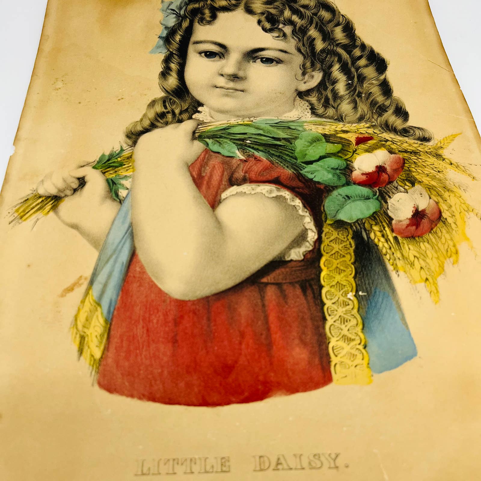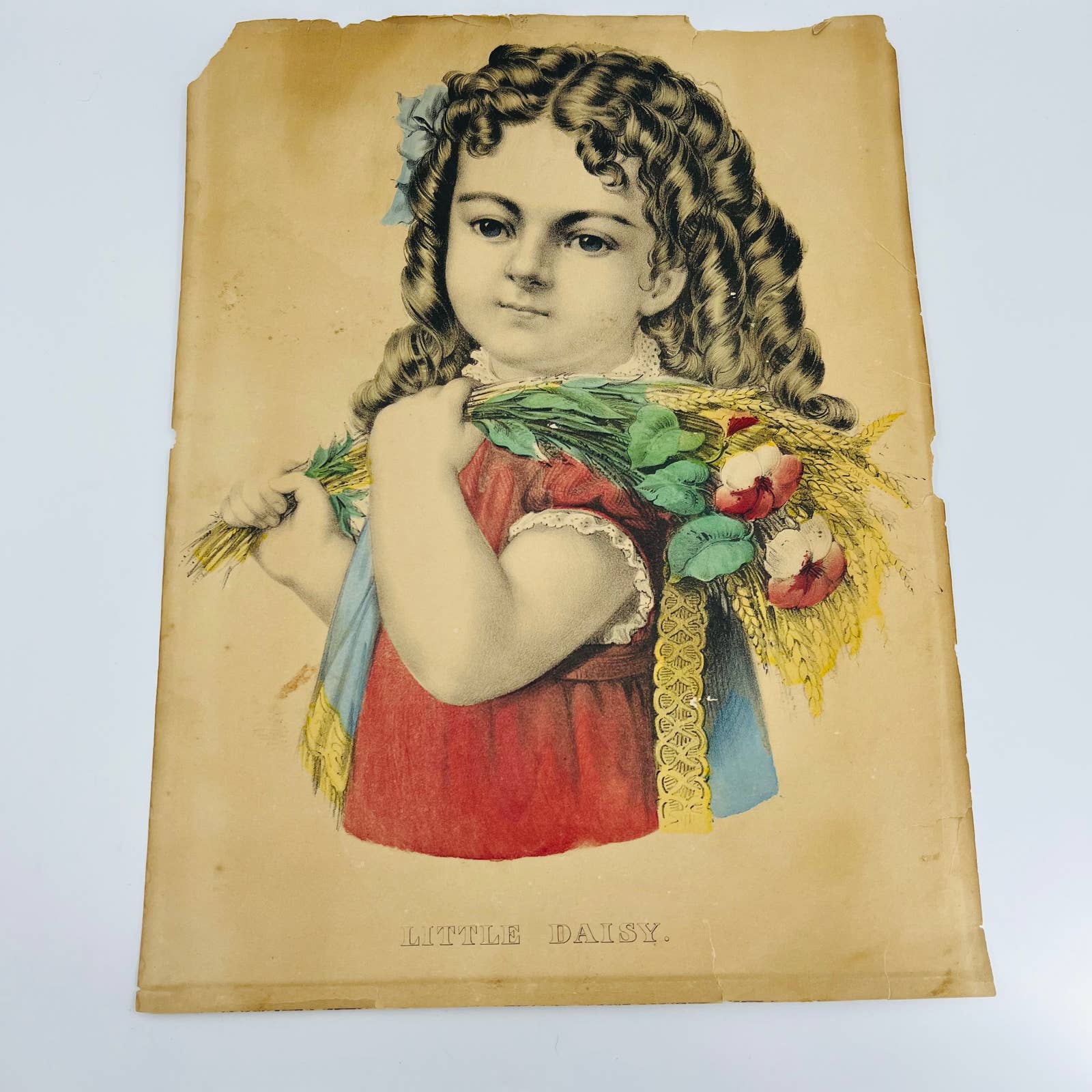 c1850 Antique Hand-Colored Currier & Ives Lithograph "Little Daisy" 11 x 14 FL1
