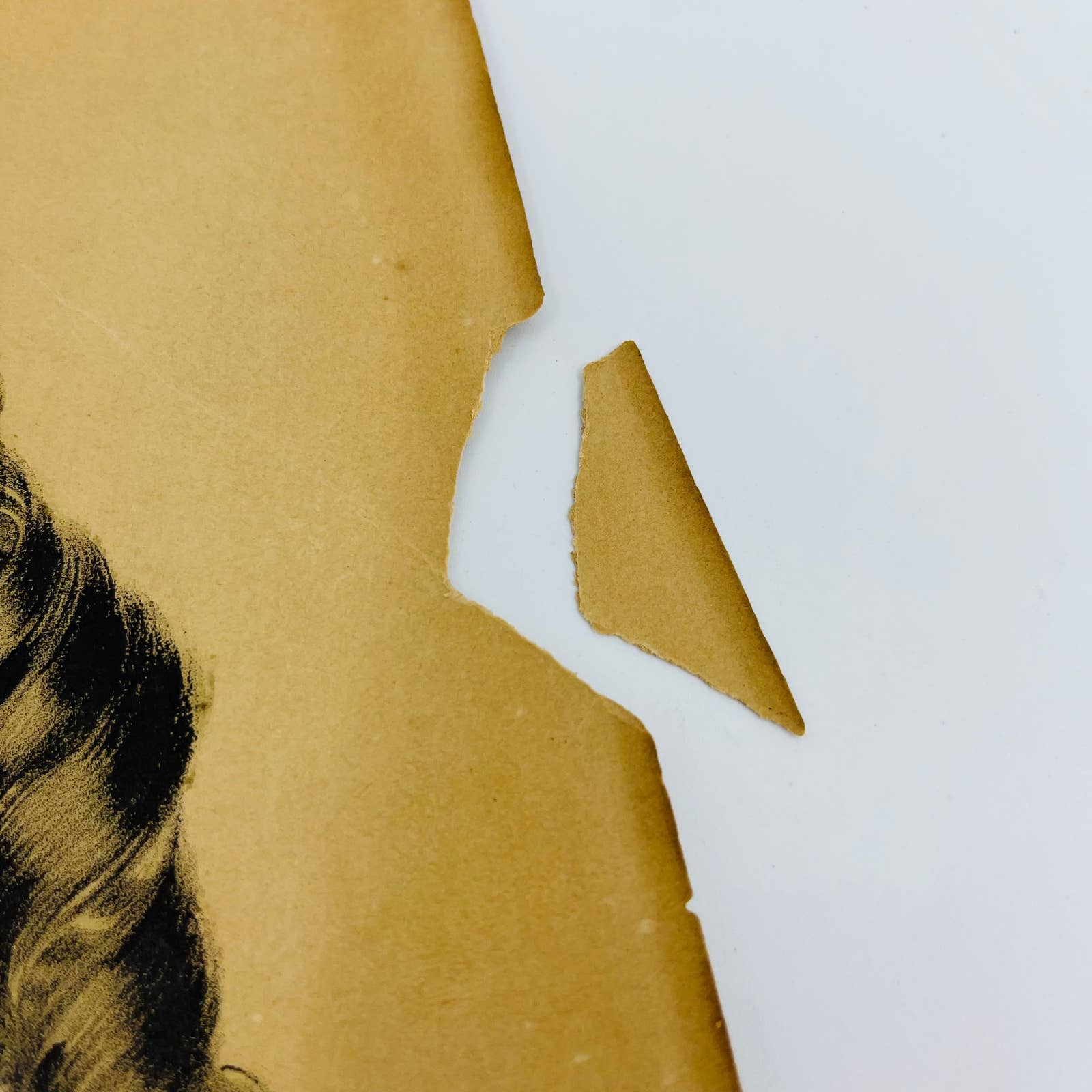 Has a small chunk broken off one side, does not effect the image, and the chunk is included. See pics, reflected in the price