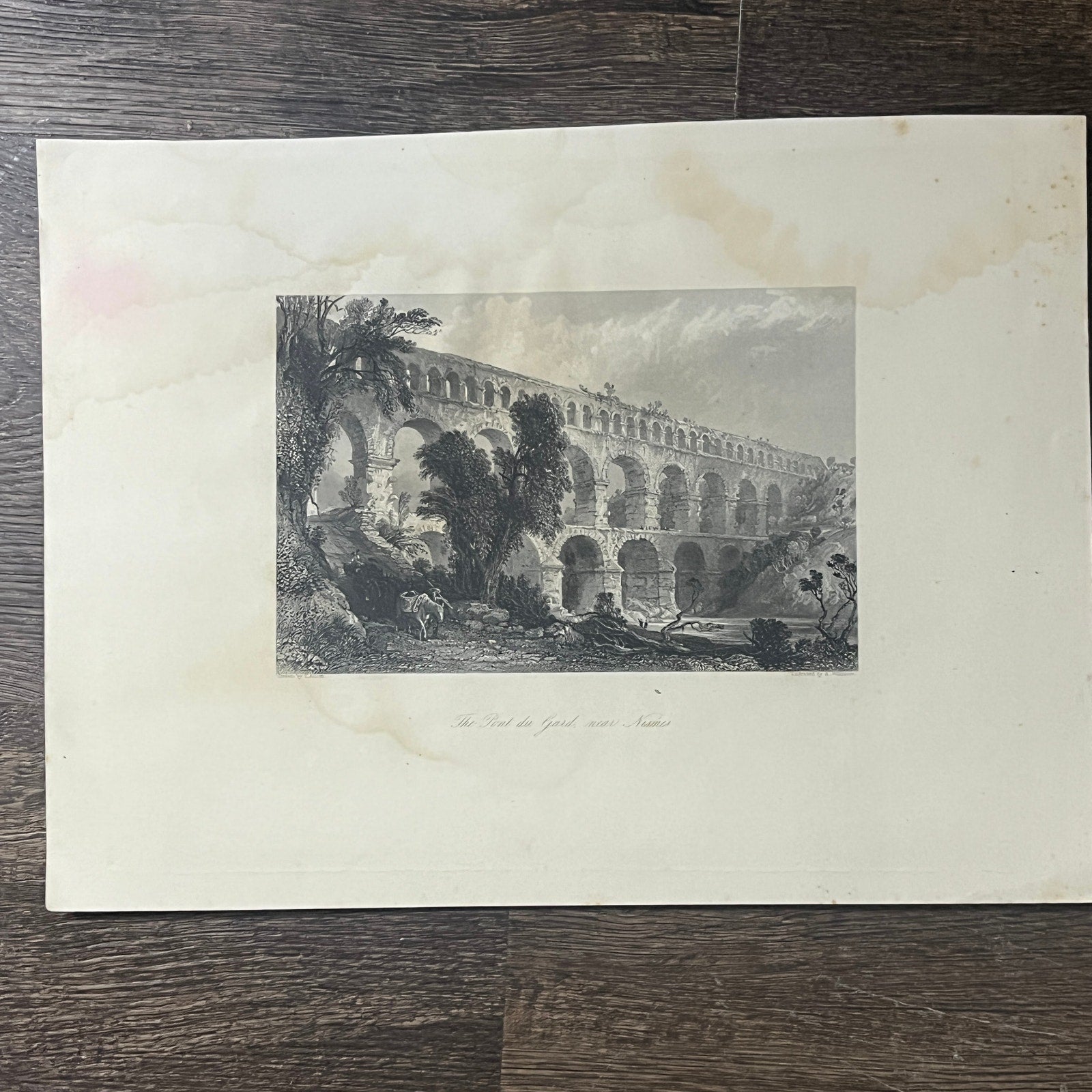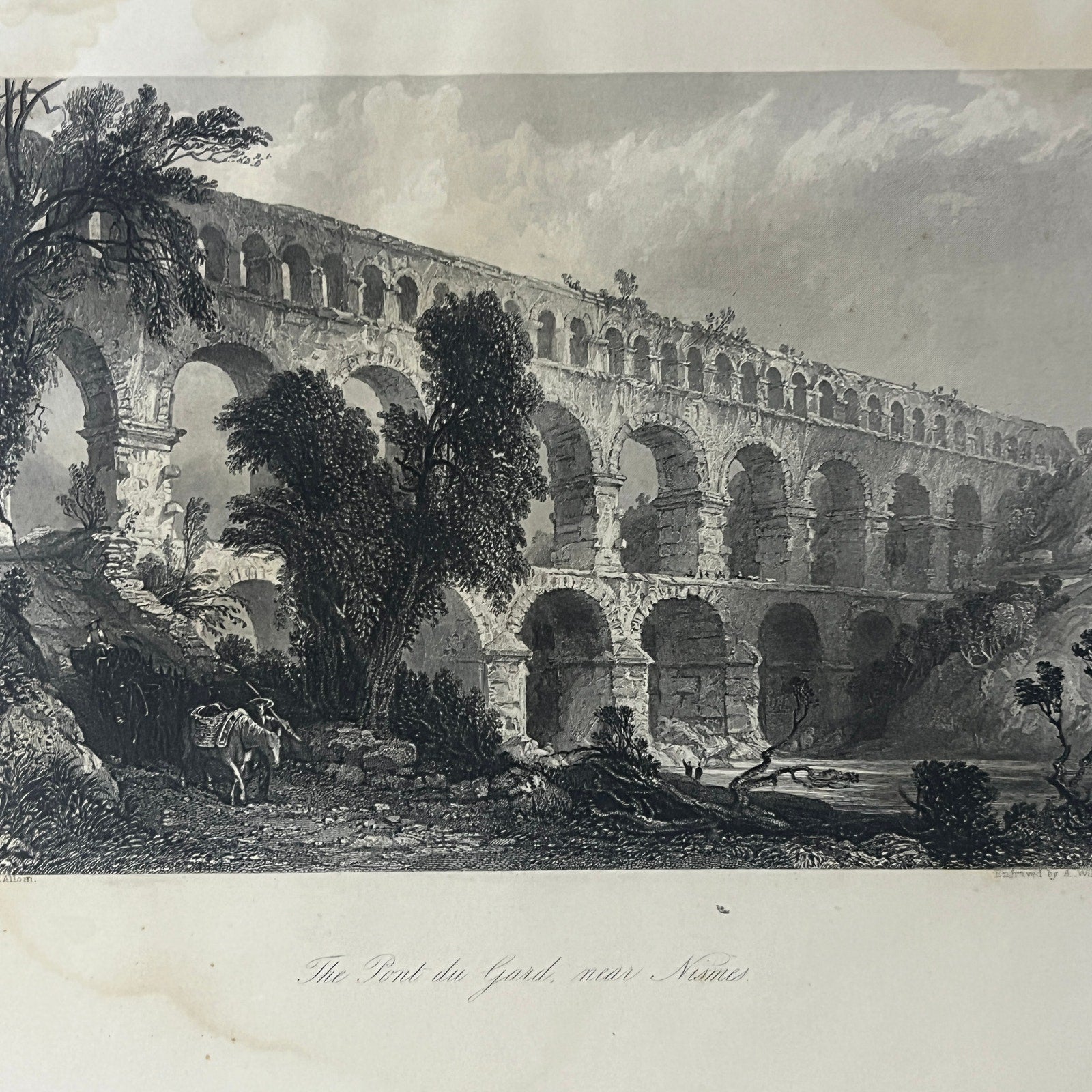 c1870 The Pont du Gard, near Nismes T. Allom Engraving Vintage Art Print 9x12 V6