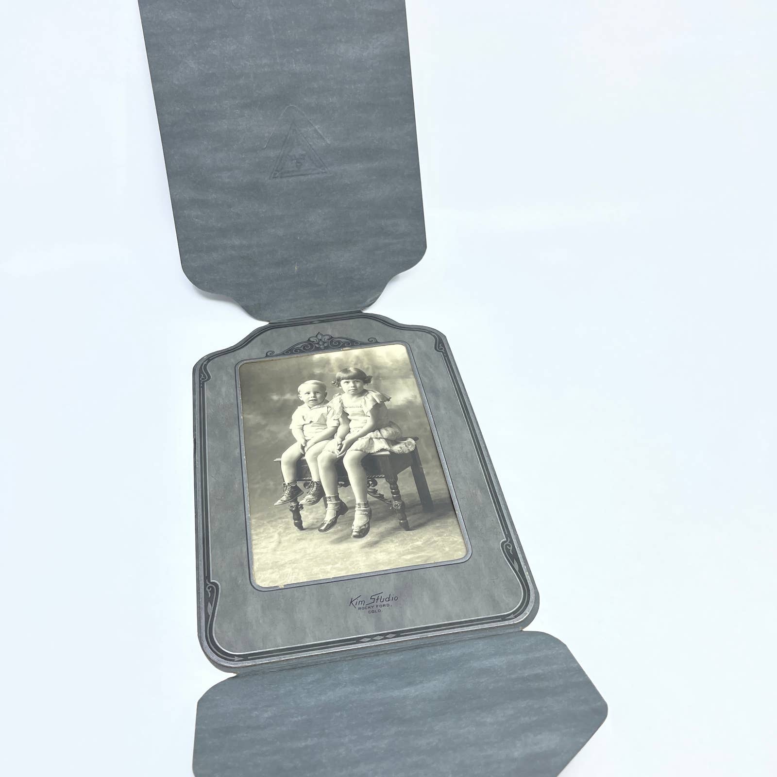 c1880 Victorian Boy & Girl on Ornate Bench CDV Kim Studio Rocky Ford CO TF5