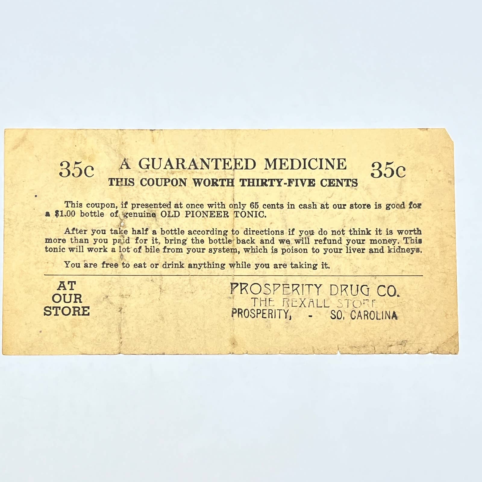 c1900 Old Pioneer Tonic Quackery Coupon Prosperity Drug Co Prosperity SC AC3
