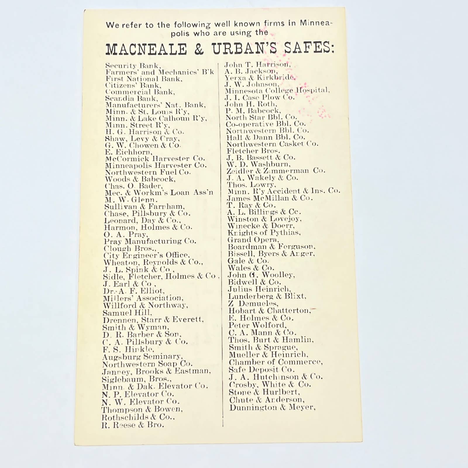 We refer to the following well known firms in Minneapolis who are using the