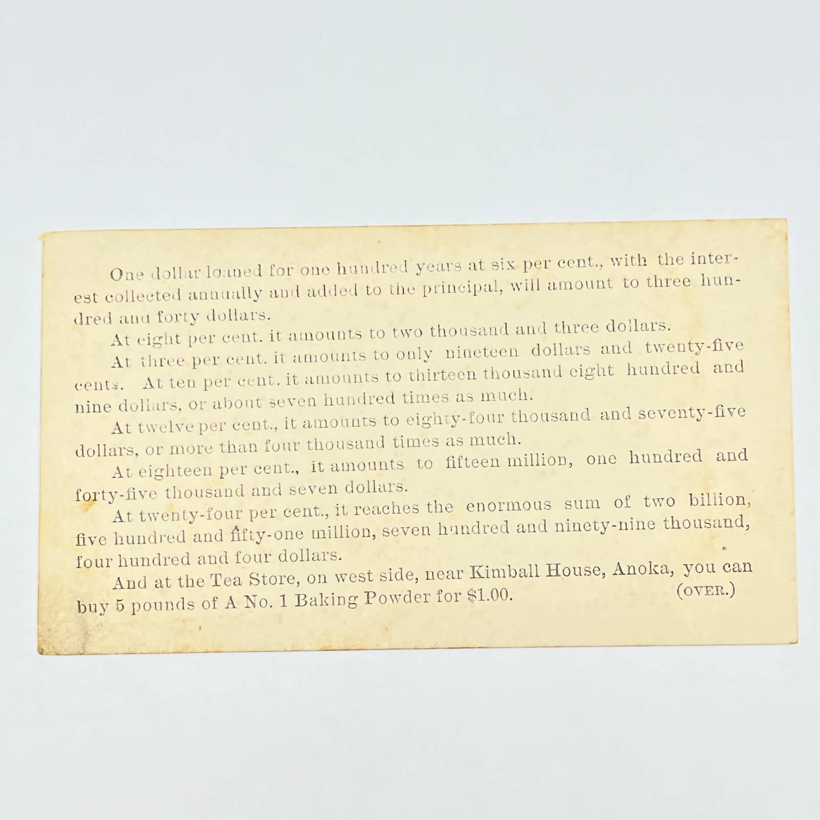 c1900 Trade Card Minneapolis City Market Tea Store Anoka MN Kimball House AC2