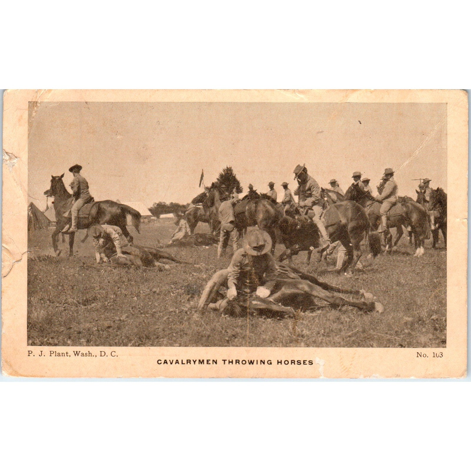 c1908 Spanish American War Cavalrymen Throwing Horses Original Postcard PD2