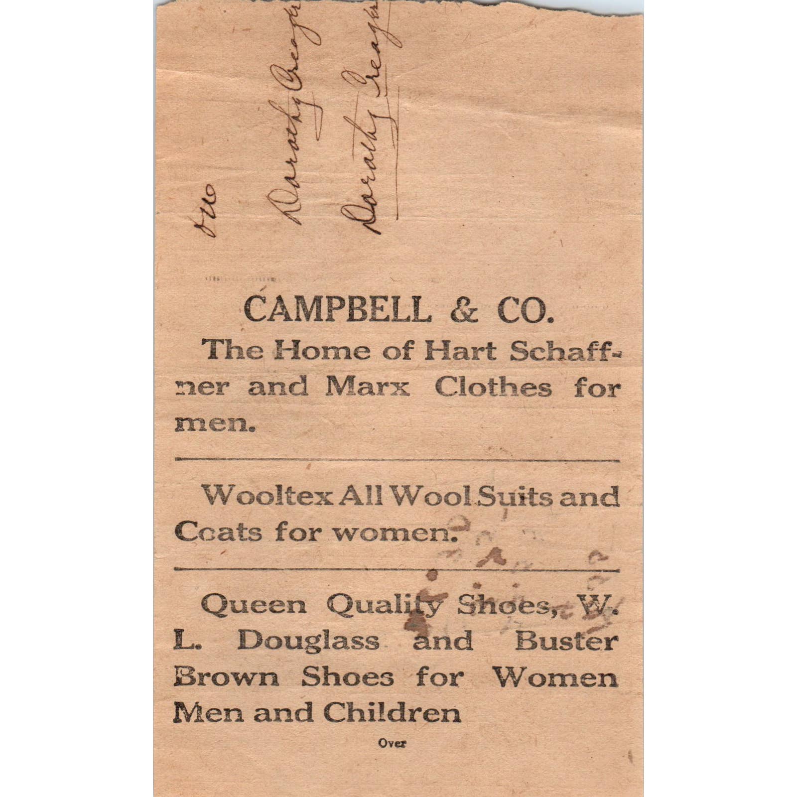 c1910 Campbell & Co. Hart Schaffner & Marx Clothes Receipt Kendallville IN AD8