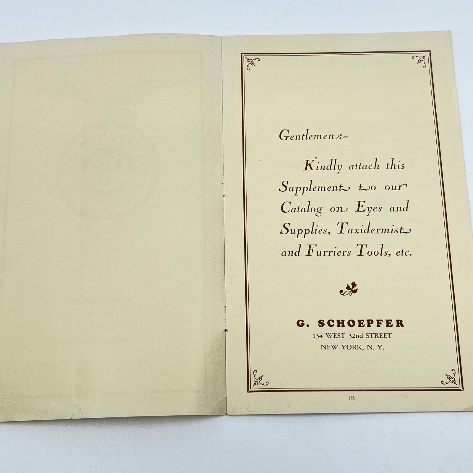 c1910 G. Schoepfer Glass Eyes Catalog Taxidermist & Furrier Supplies NY TF7