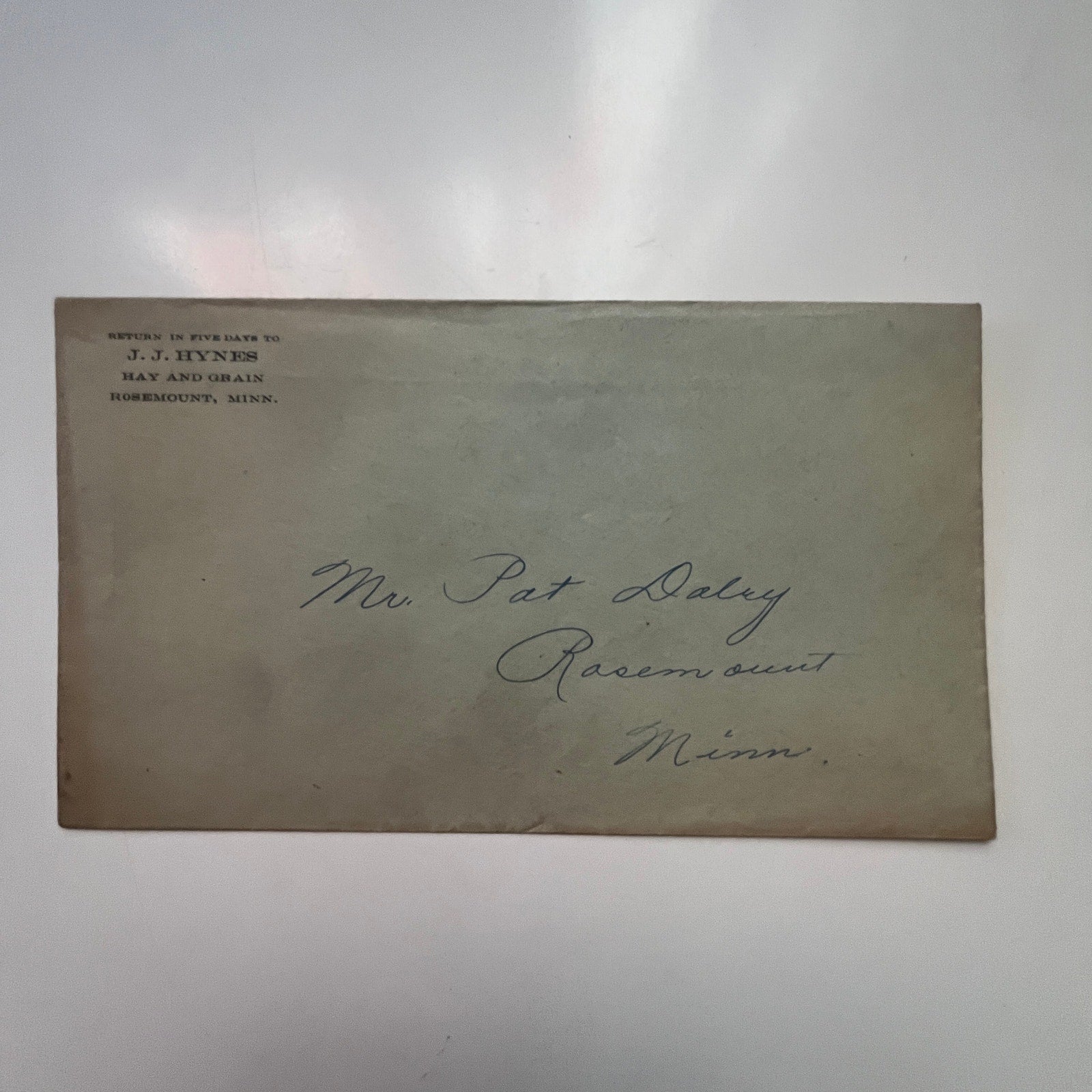 c1910 J.J. Hynes Hay and Grain Rosemount MN Envelope AJ4-H2