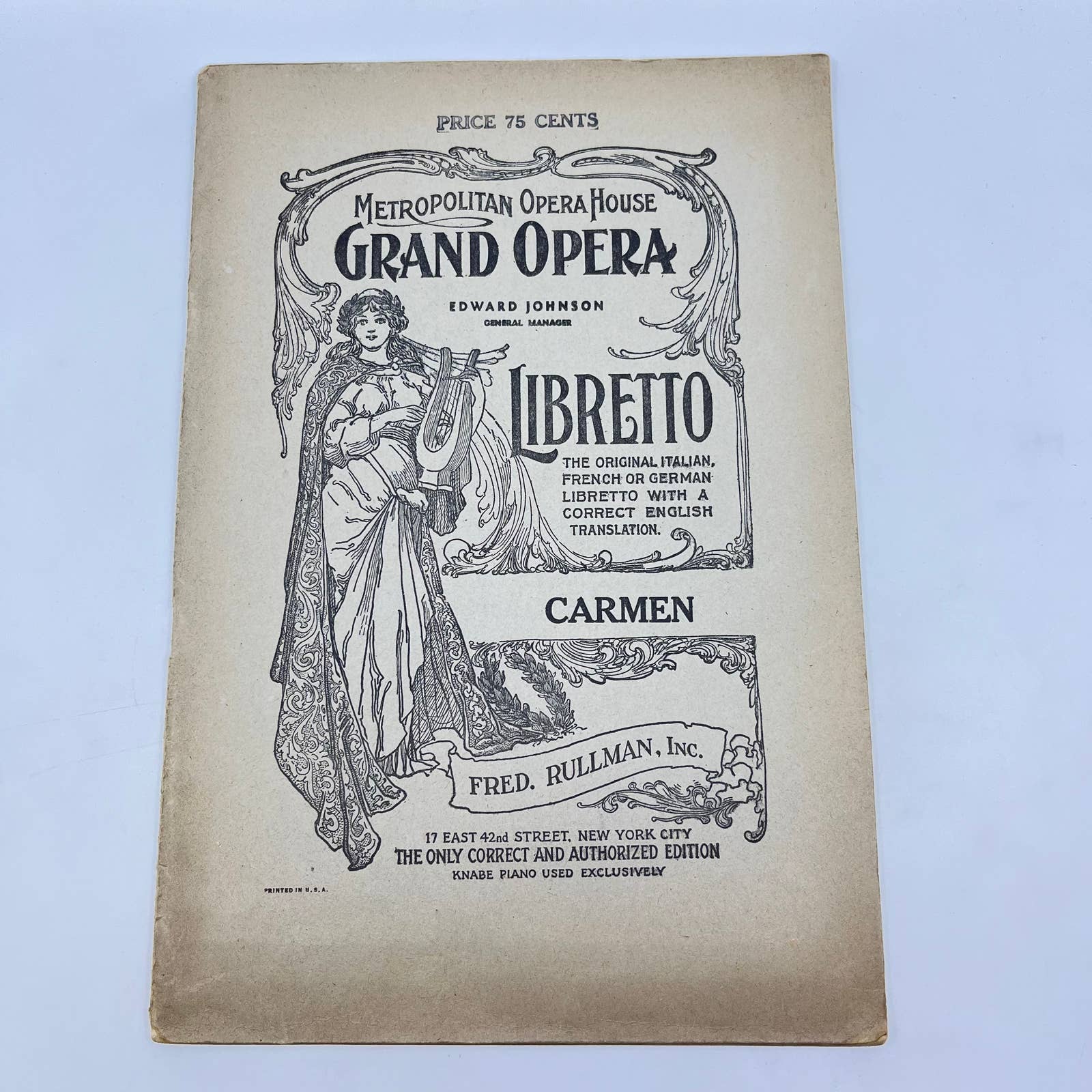 c1910 Metropolitan Opera Grand Opera Program CARMEN Libretto Playbill TE9
