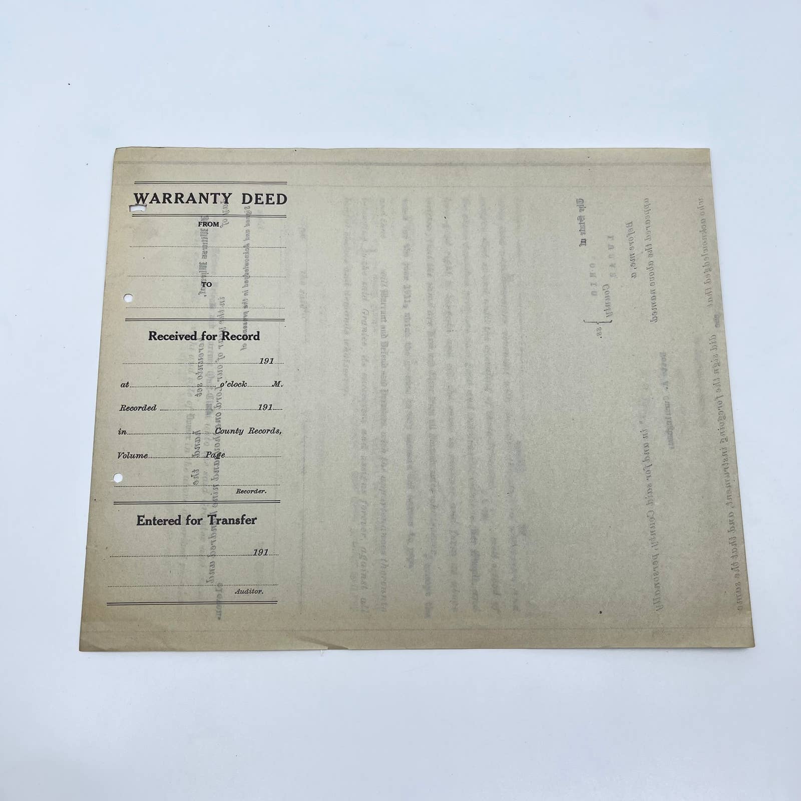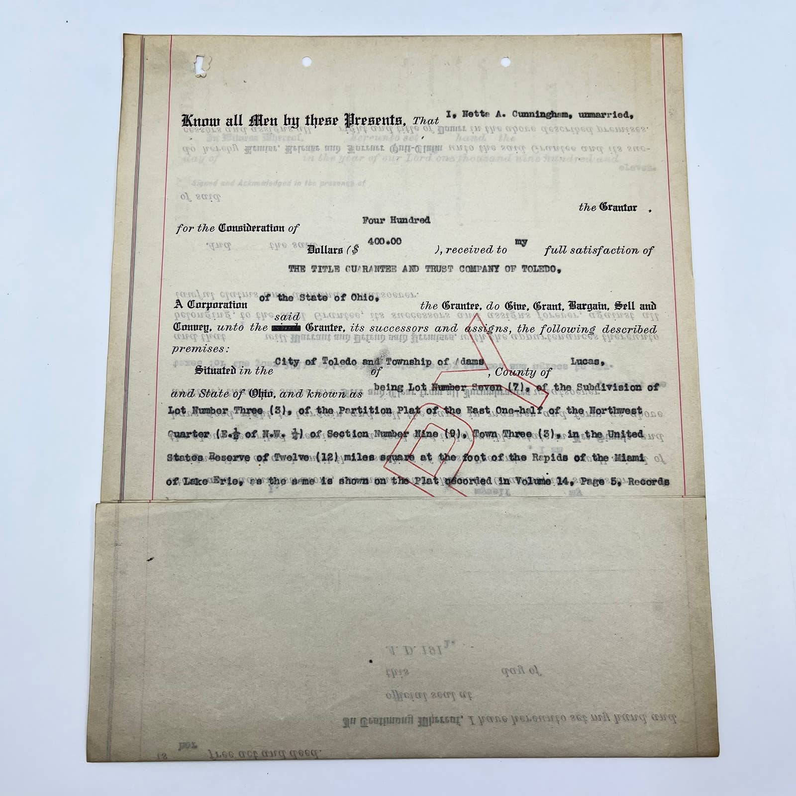 c1910 Nette A. Cunningham Land Deed Document Toledo OH AB2