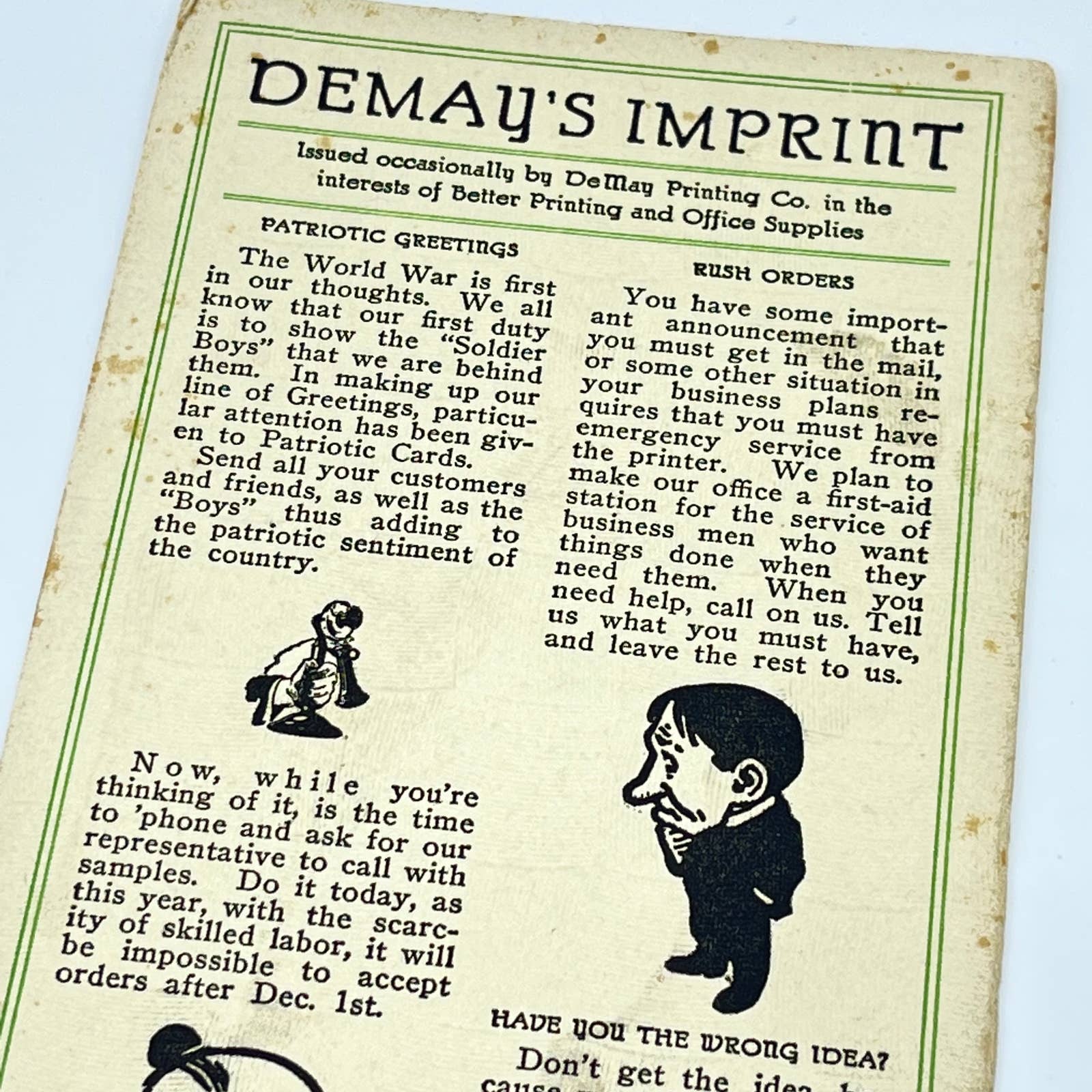 c1918 WWI Blotter Card DeMay’s Printing Jackson MI SC9
