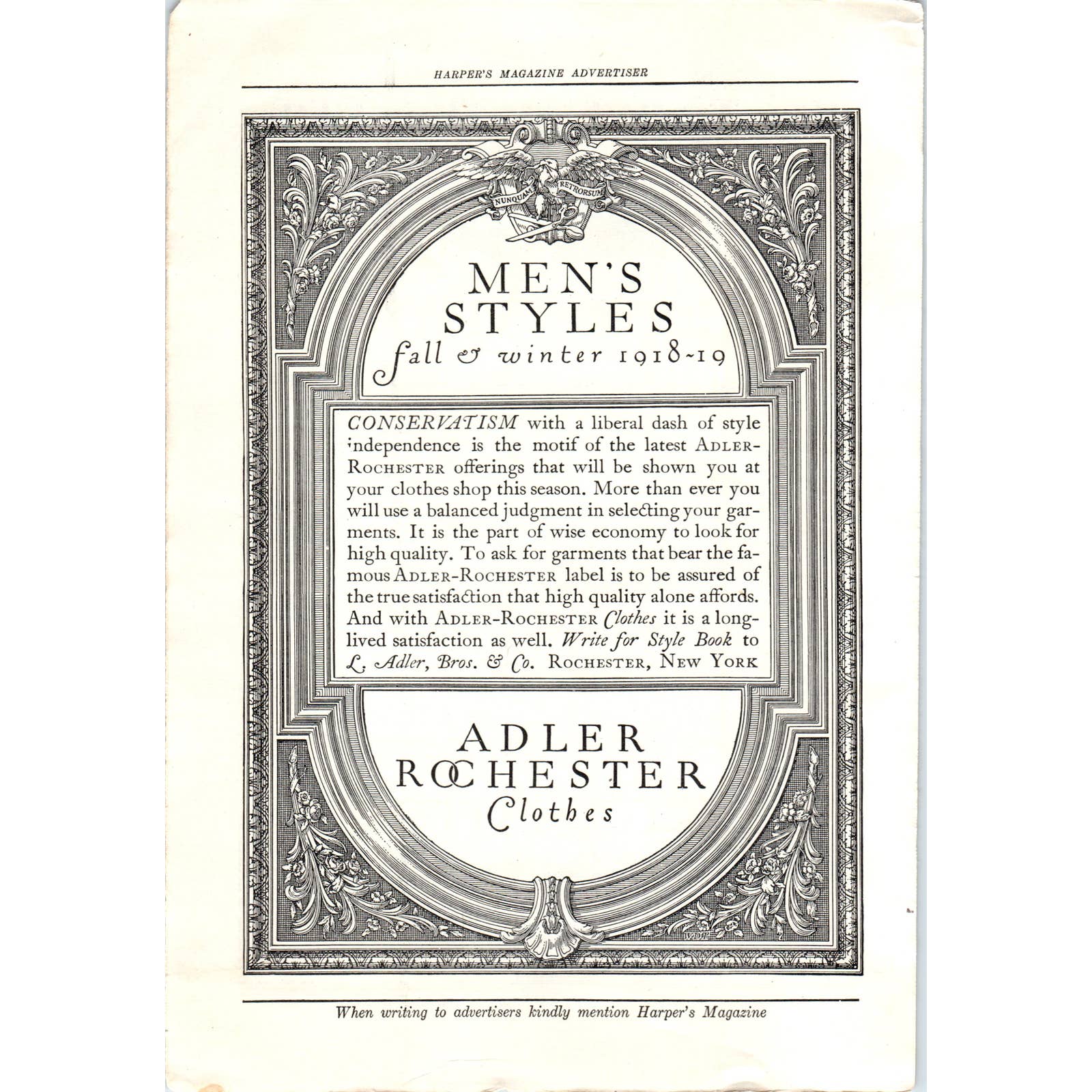 c1920 Harper's Magazine Ad - Adler Rochester Clothes Mens Styles 1918-19 TF6-1