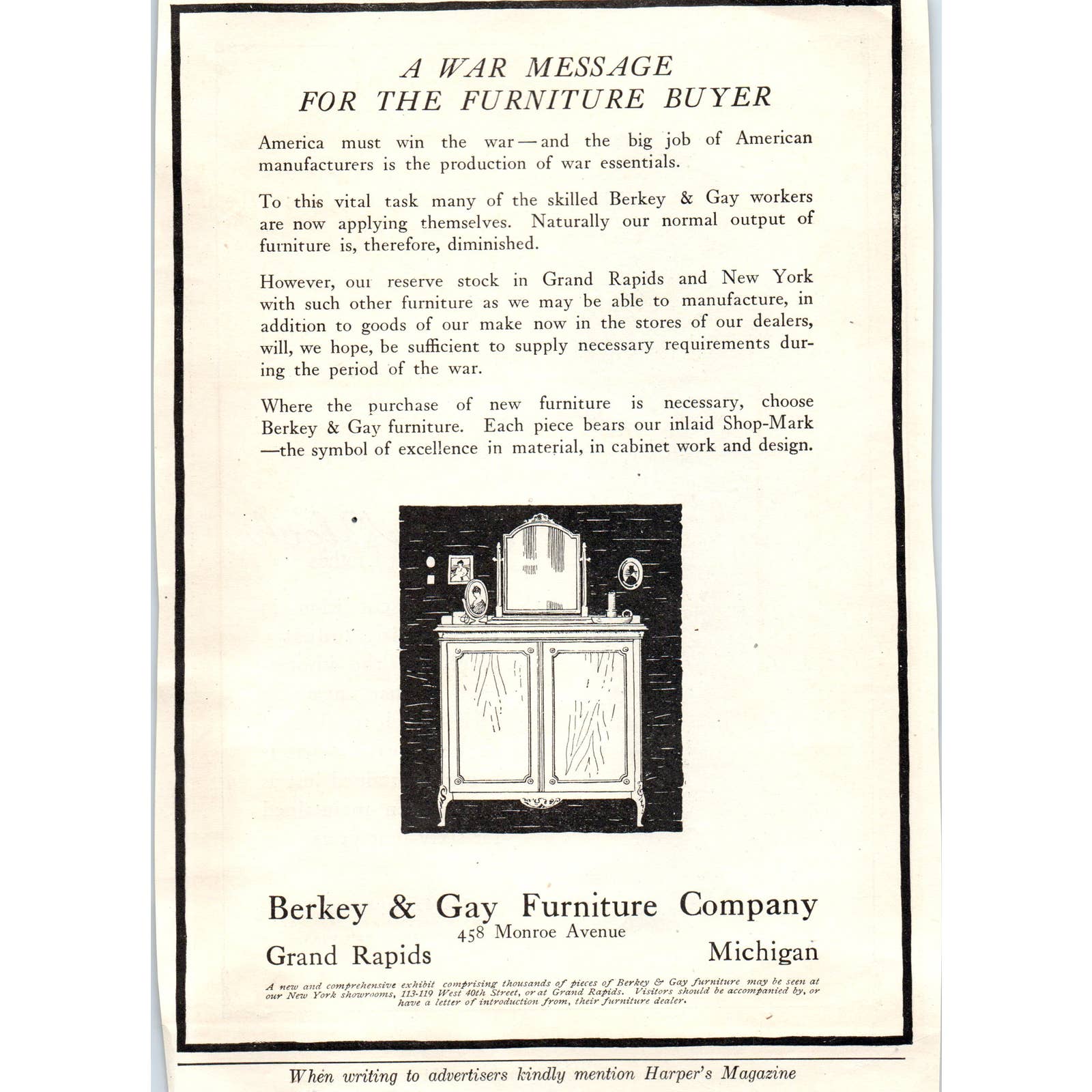 c1920 Harper's Magazine Ad Berkey & Gay Furniture Company Grand Rapids MI TF6-1