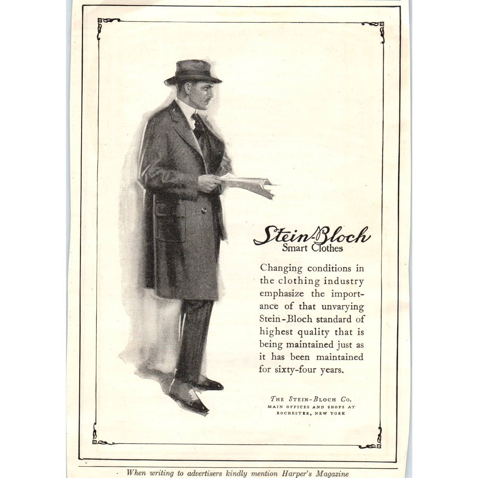 Original print ad taken from a c1920 Harper's Magazine. See pics for condition.
