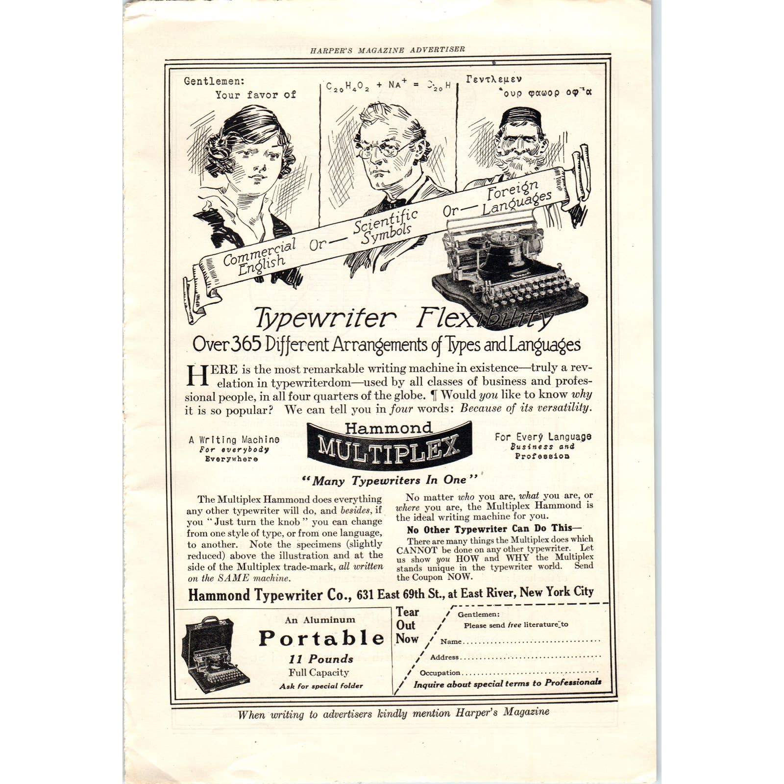 c1920 Harper's Magazine Ad - Hammond Multiplex Portable Typewriter TF6-1