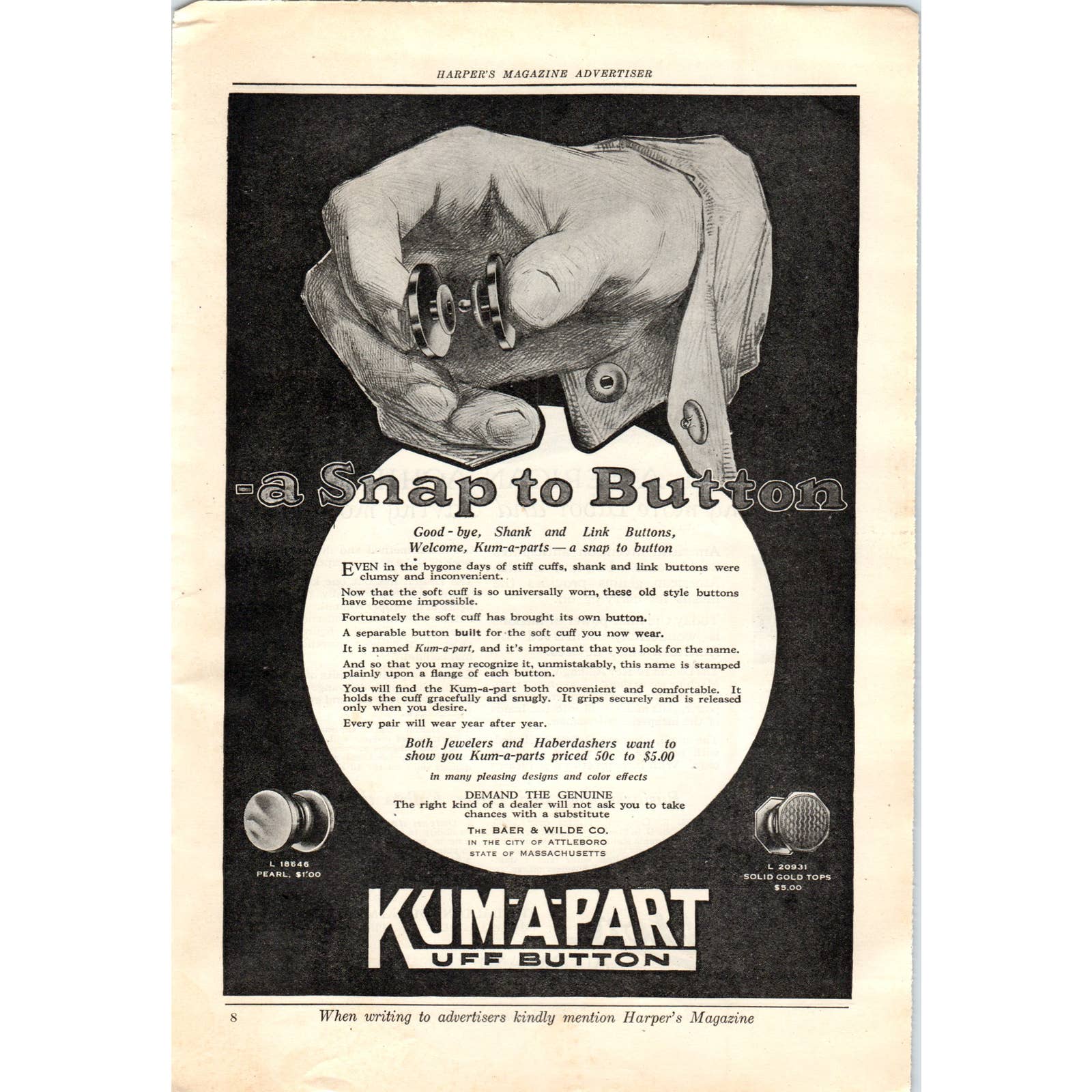 c1920 Harper's Magazine Ad - Kum-A-Part Kuff Button Baer & Wild Co TF6-1