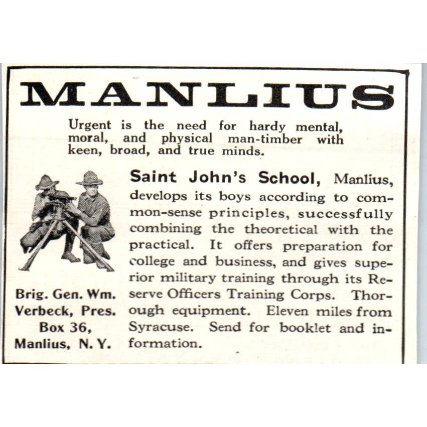 c1920 Harper's Magazine Ad - Manlius Saint John's School Gen Wm Verbeck NY EA3