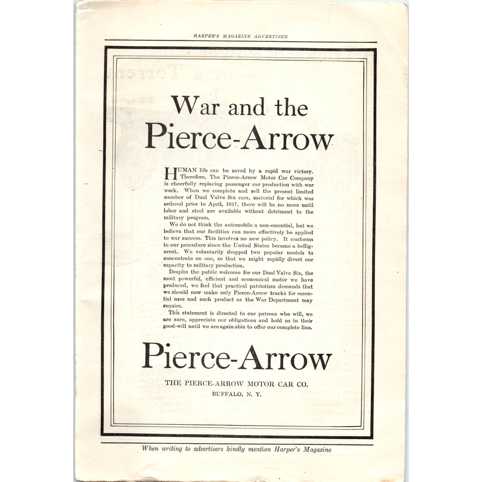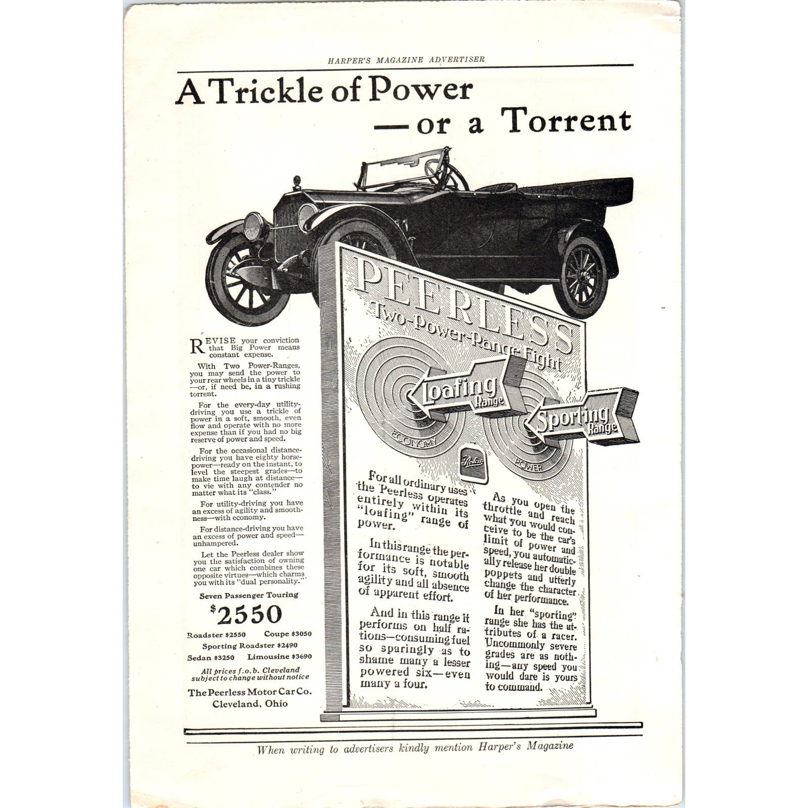 c1920 Harper's Magazine Ad - Peerless Motor Car Co Cleveland OH TF6-1