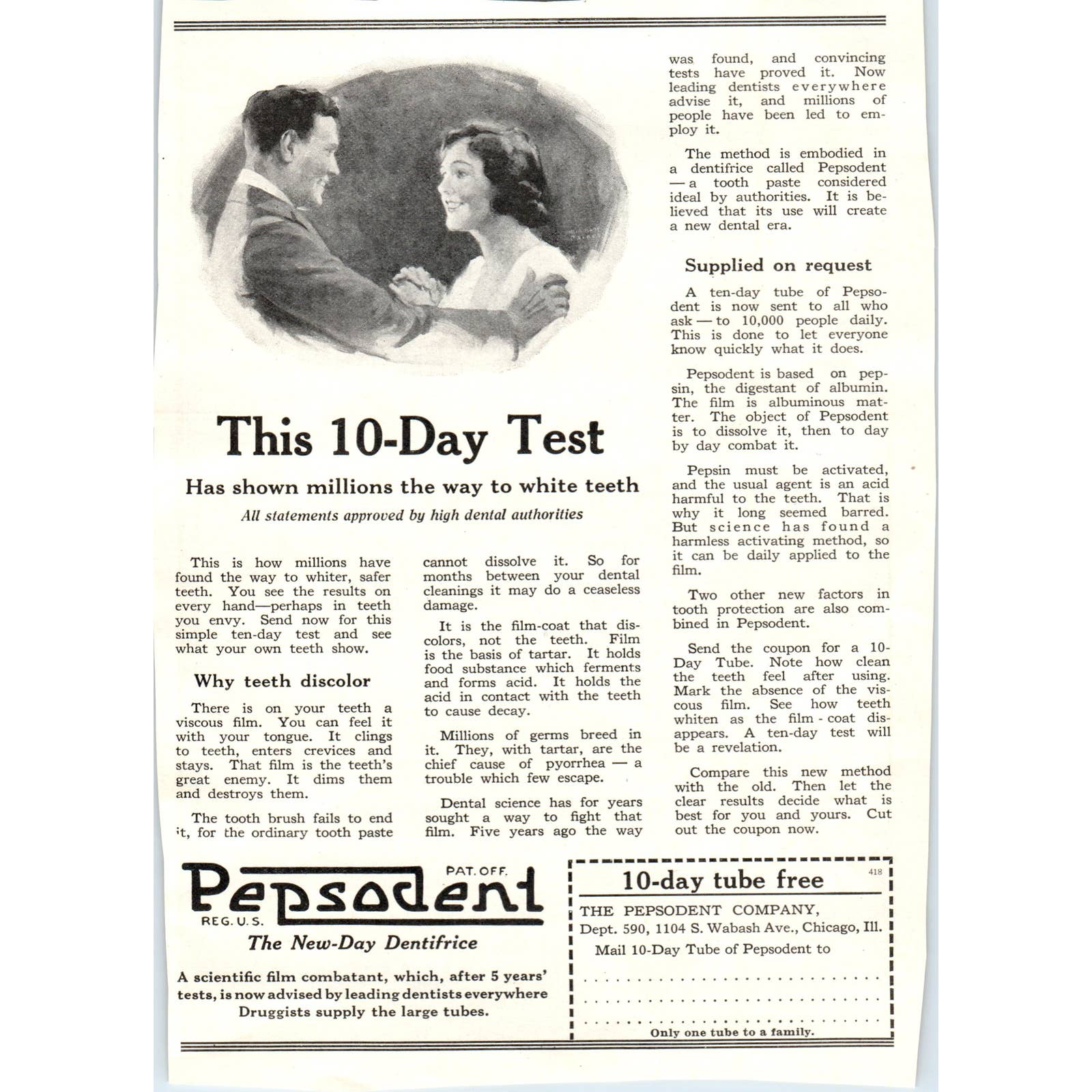 c1920 Harper's Magazine Ad - Pepsodent Toothpaste 10 Day Test TF6-1