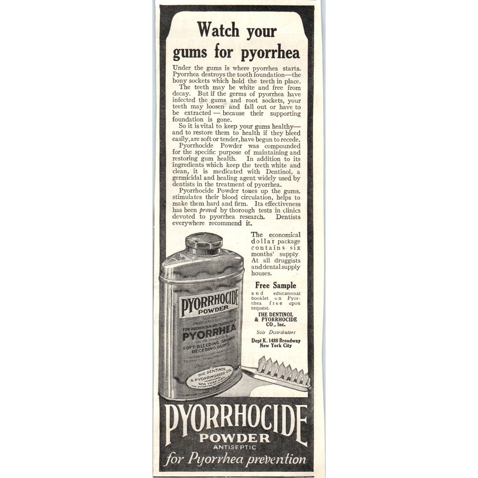 c1920 Harper's Magazine Ad Pyorrhocide Powder Dentinol & Pyorrhocide Co NY EA3-4
