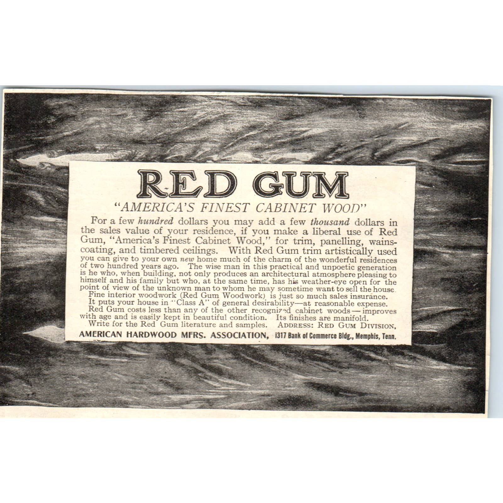 c1920 Harper's Magazine Ad - Red Gum Cabinet Wood Memphis TN EA3