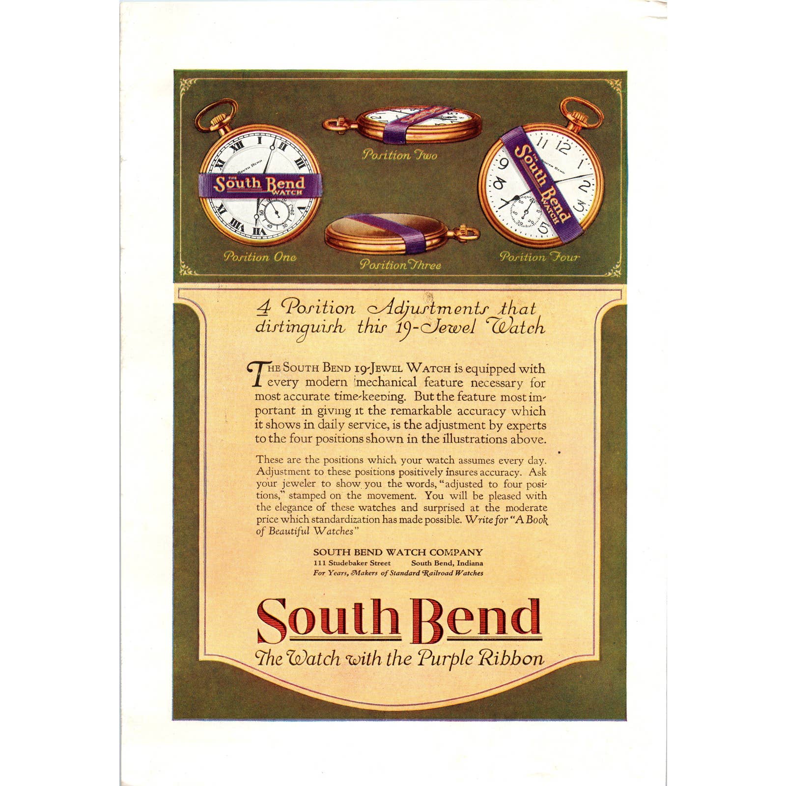 c1920 Harper's Magazine Ad - South Bend Pocket Watches Purple Band Indiana TF6-1