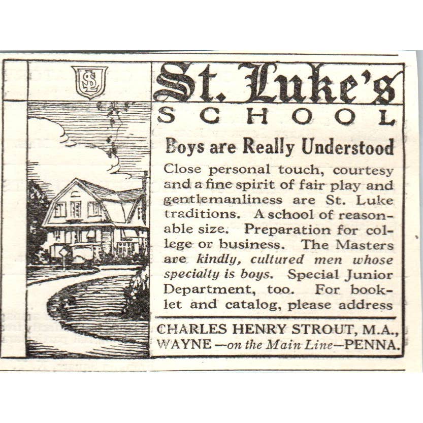 c1920 Harper's Magazine Ad - St. Luke's School Charles Henry Strout Wayne PA EA3